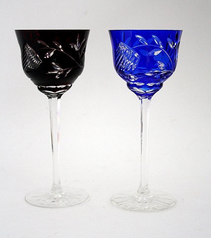 Bøhmisk krystal, Vinglas med slibninger på kumme og stilk. Højde 20,5 cm. Øverste diameter 7,5 cm.Pris: 225 kr. stk.