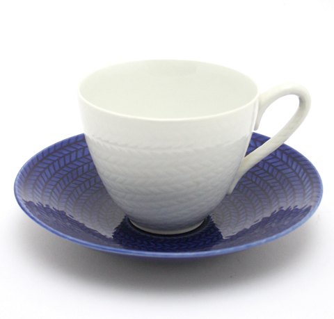 Rørstrand, Blå Eld, Stor kaffekop/tekop hvid med blå underkop. Designet af Hertha Bengtson i 1950. Formnr. 632. Højde 7,5 cm. Diameter 9 cm. God stand, men enkelte med lettere misfarvning i bunden udenpå. Pris:SOLGT