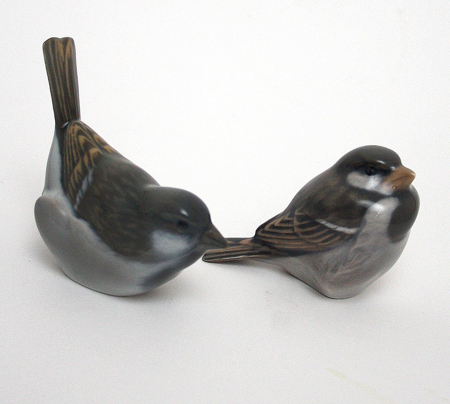 Royal Copenhagen, Gråsprurve, Optimisten nr 1081, længde 10 cm. Pessimisten nr. 1519, længde 8 cm. I. sortering. Pris: 225 kr. stk. 400 kr. parret