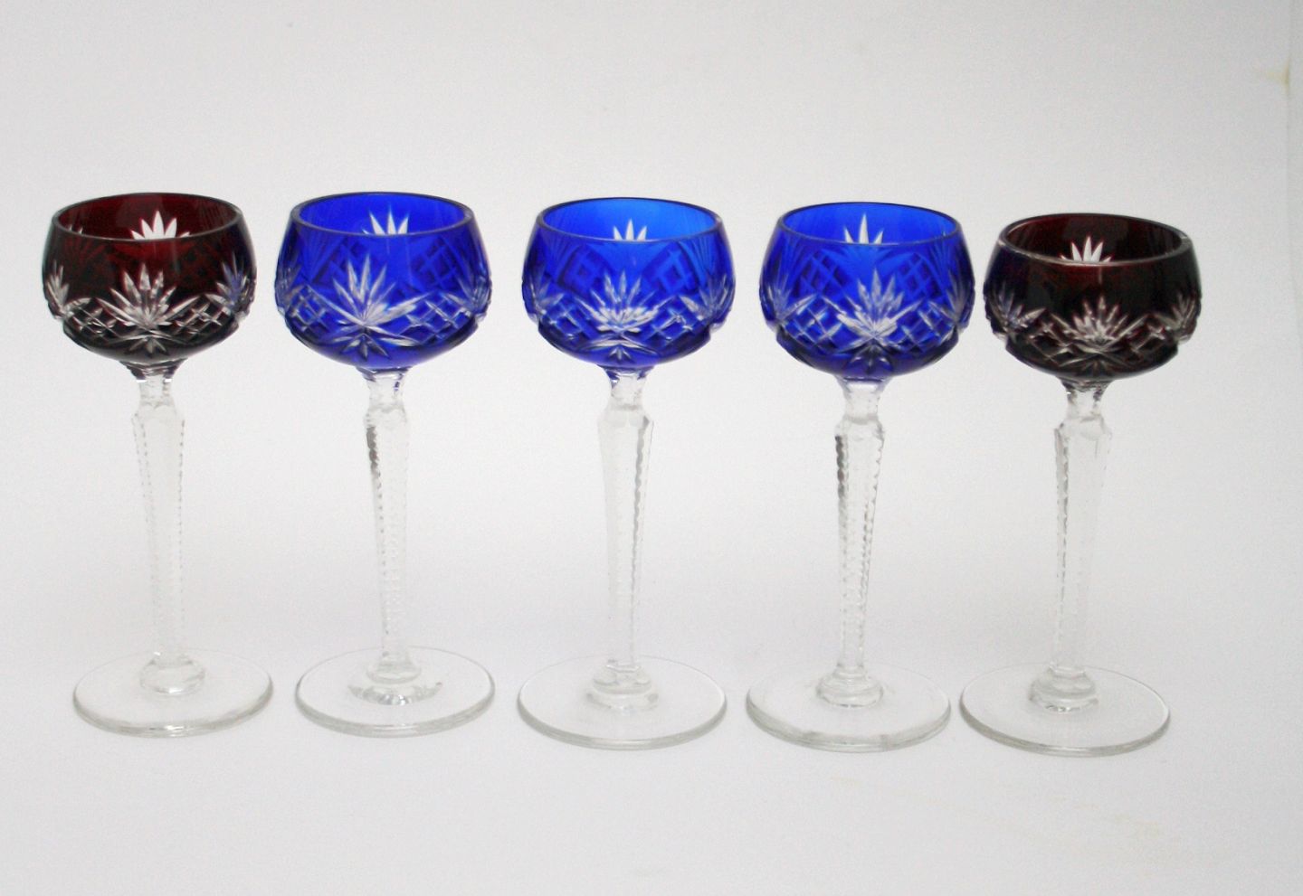 Bøhmisk krystal. Portvin. Højde 12,7 cm. Øverste diameter 14,5 cm. Pris: 125 kr. stk. Blå. Lager: SOLGT Bordeaux. Lager: SOLGT