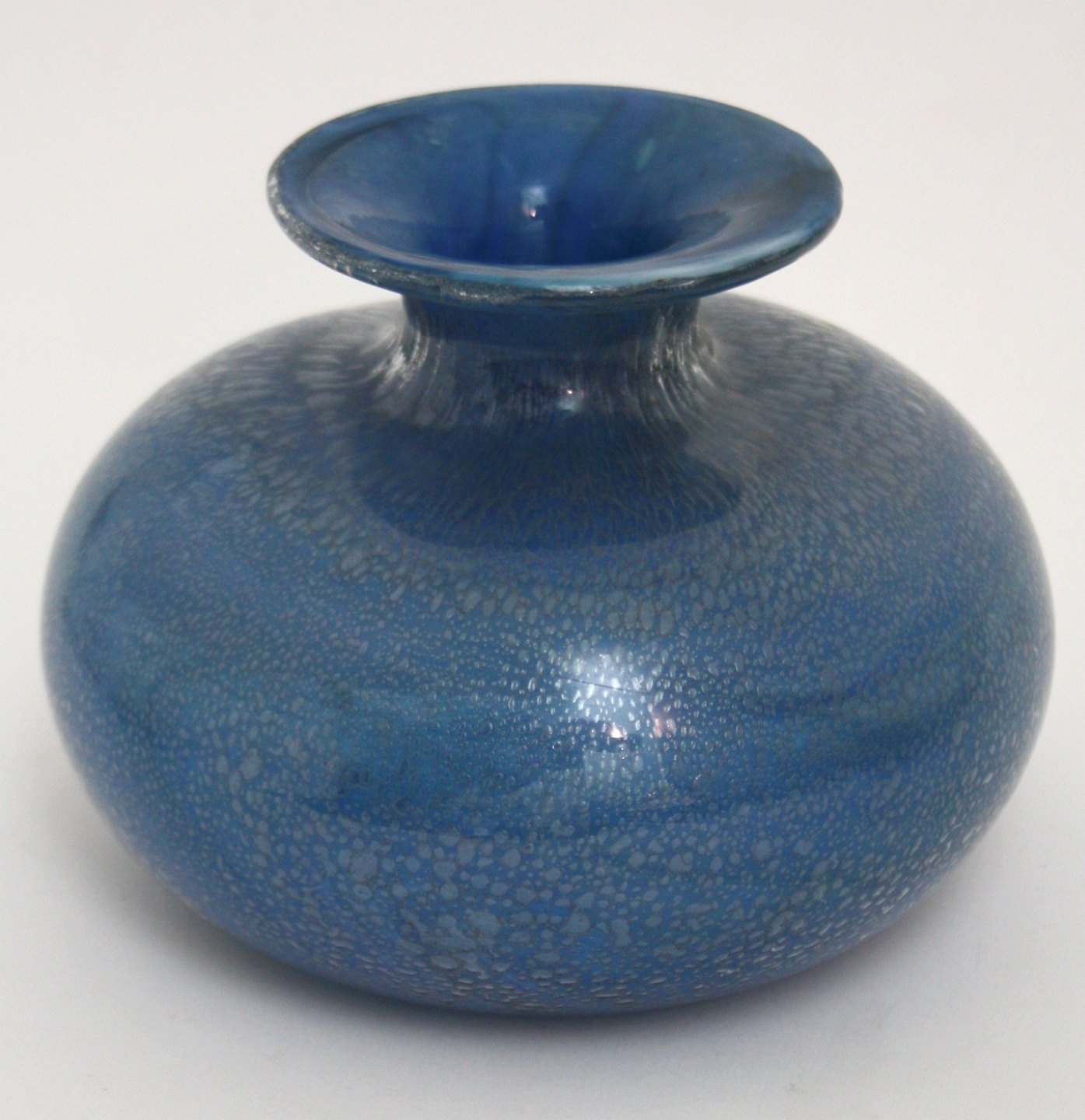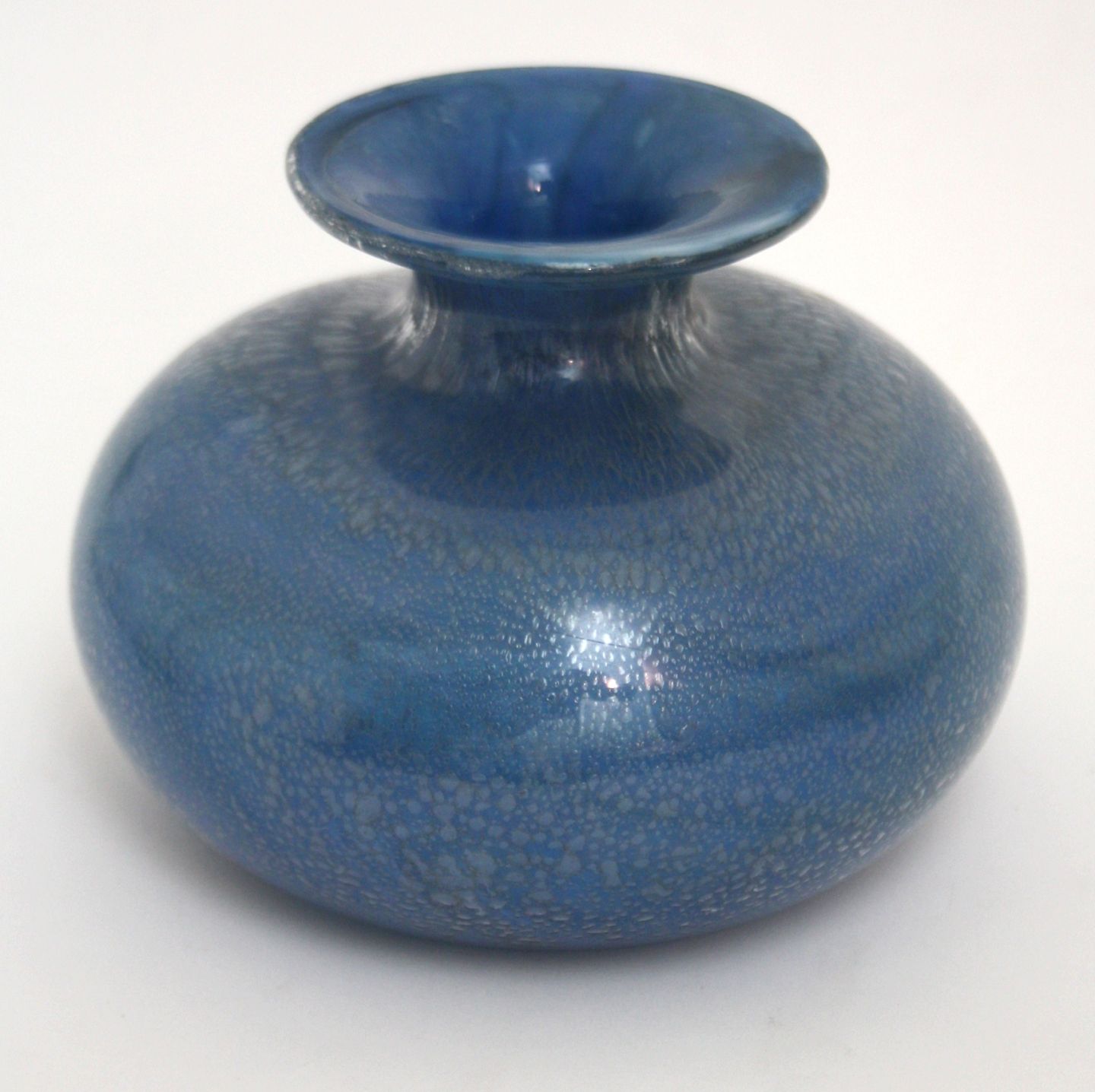 Holmegaard, Blå troldevase, designet af Sidse Werner. Højde 10,5 cm. Diameter 13,5 cm. Ikke signeret. Pris: 300 kr