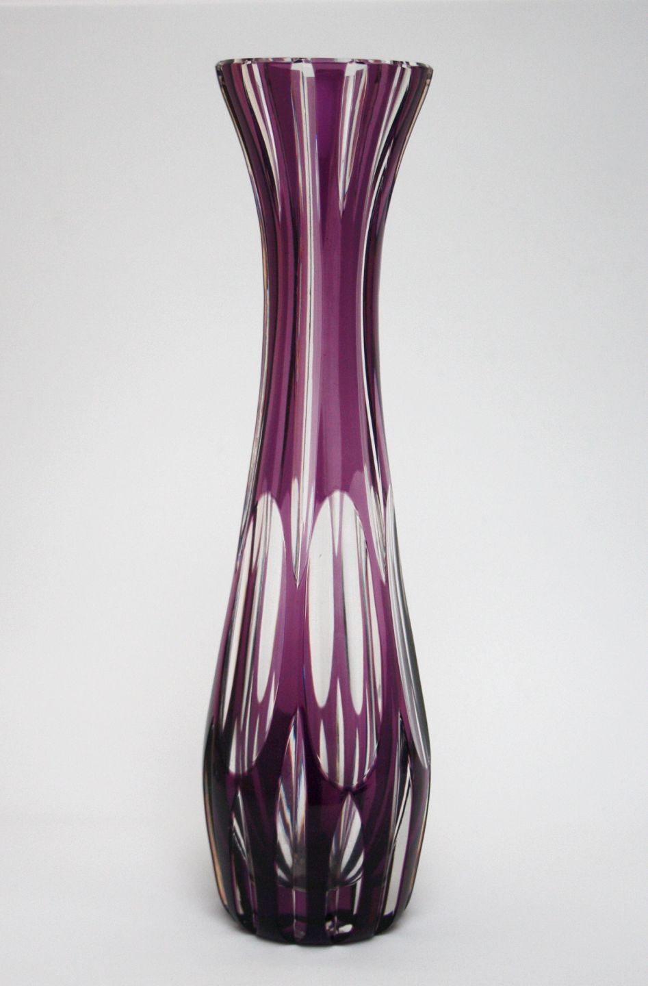 Bøhmisk krystal vase med lilla overfang. Højde 31 cm. Øverste diameter, 7,5 cm. Pris: SOLGT