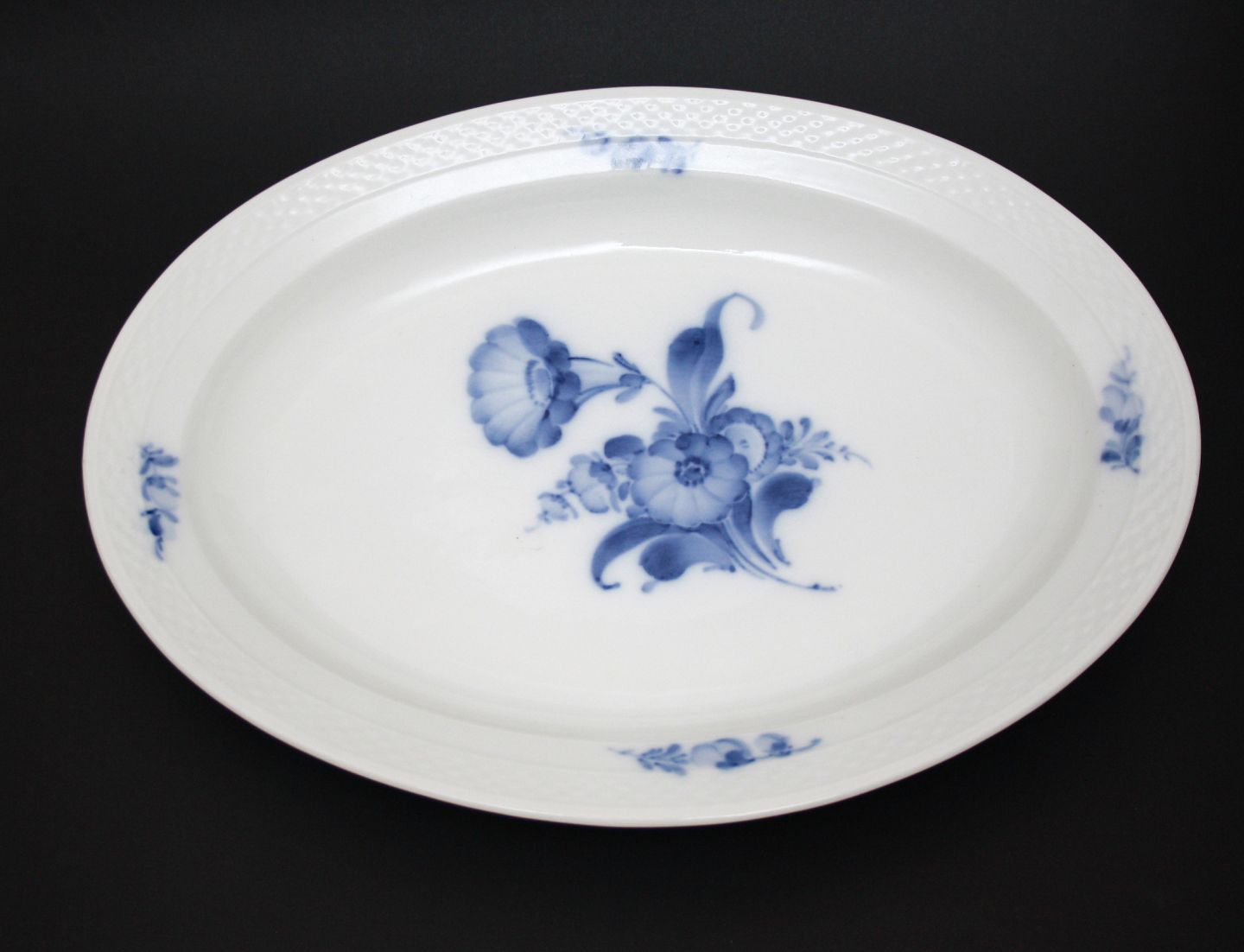 Royal Copenhagen, Blå Blomst flettet, Ovalt fad. Nr. 10/8016. Længde 34 cm. Bredde 25,5 cm. I. sortering. Pris: SOLGT