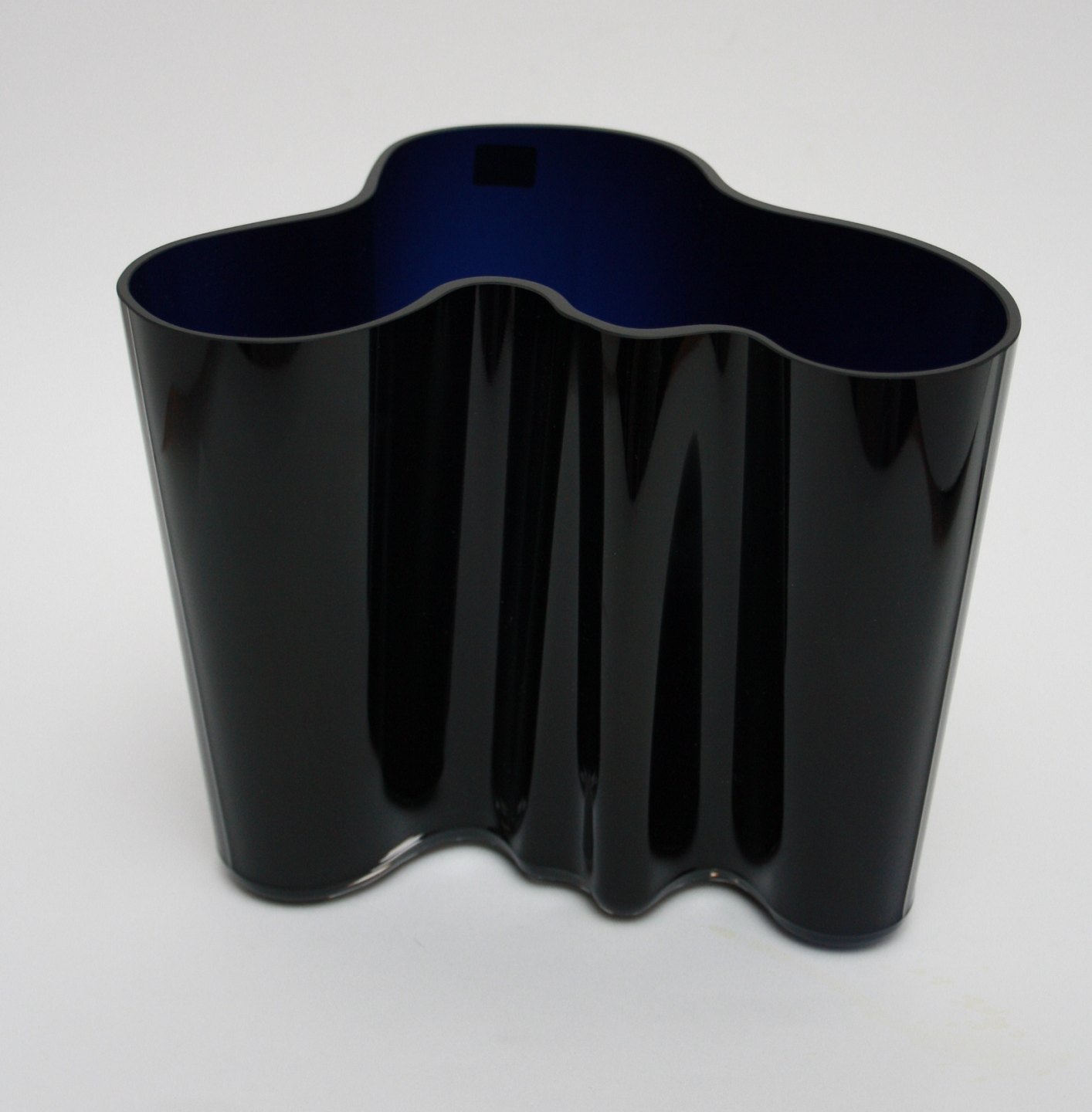 Iittala, Finland, Alvar Aalto, Natblå vase. Højde 16,5 cm. Længde 20 cm. Pris: SOLGT