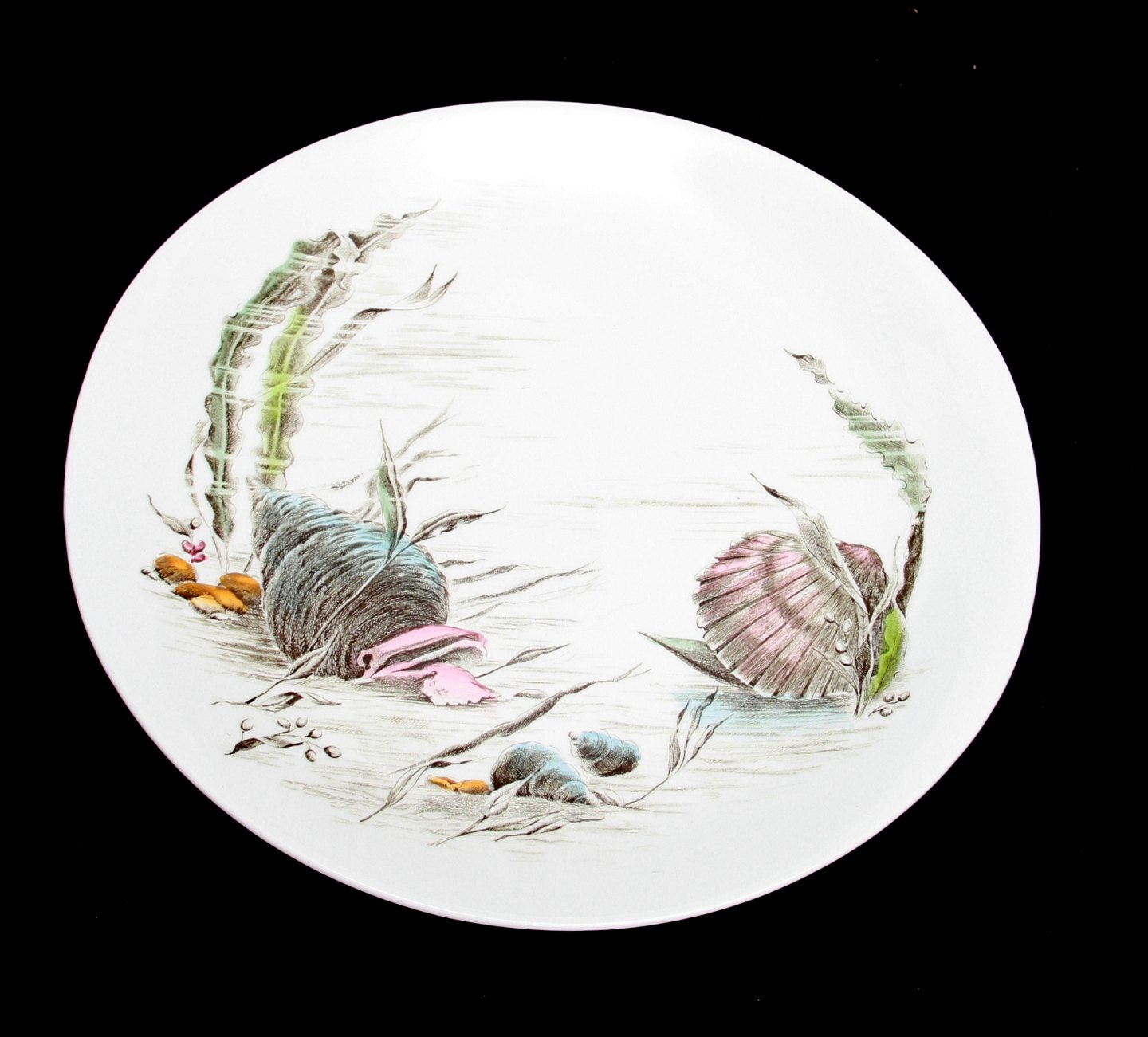 Tallerkener med forskellige skaldyr motiver. Mål 26 x 24 cm.