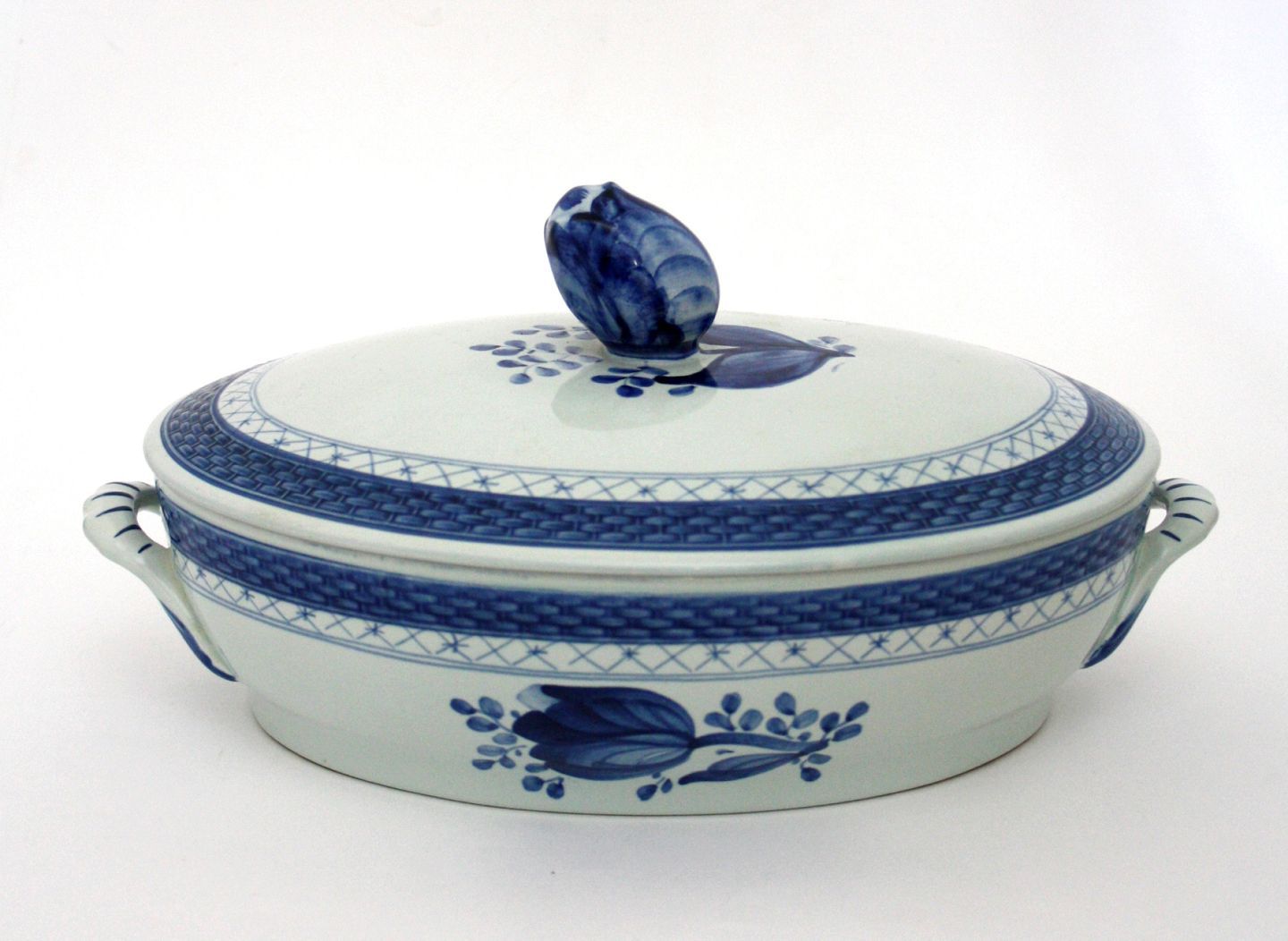 Oval terrin med låg. Nr. 11/921. Længde 30 cm. Bredde cm. Højde med låg 14,5 cm. Flot stand. Pris: SOLGT