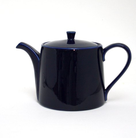 Lyngby Dan-ild med glasurfarver, blå 2600. Design Axel Brüel i 1958. Tekande med låg. Højde 14,5 cm. Længde 23,5 cm. Pris: SOLGT