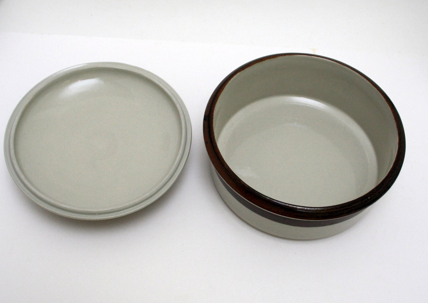 Arabia stoneware, Finland, Karelia designet af Anja Jaatinen i 1975. Stor skål med låg. Højde 13,5 cm. Diameter 22,5 cm. Pris: 375 kr. stk. Lager: 1