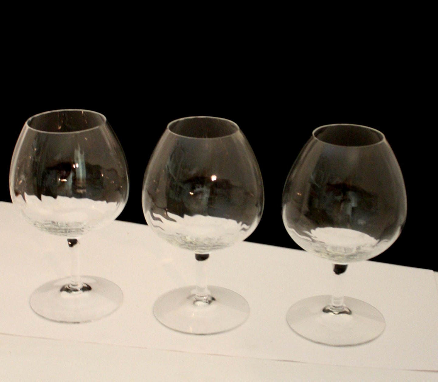 Holmegaard, Capriccio. Cognac glas med optiske striber. Designet af Ole Kortzau i 1990. Højde 15,5 cm. Øverste diameter 6 cm. Pris: 175 kr. stk. Lager: 8