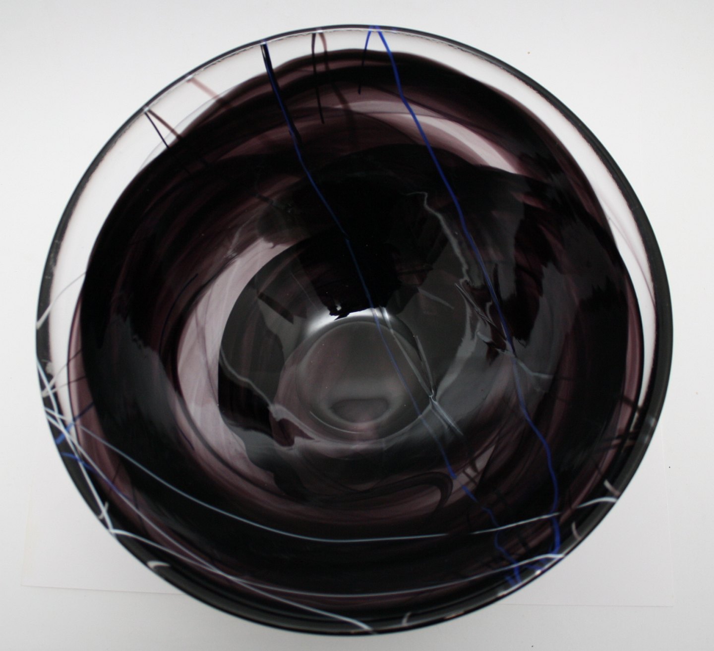 Kosta Boda, Sweden, Contrast stor skål sort grundfarve med blå og hvide striber. Designet af Anna Ehrner.