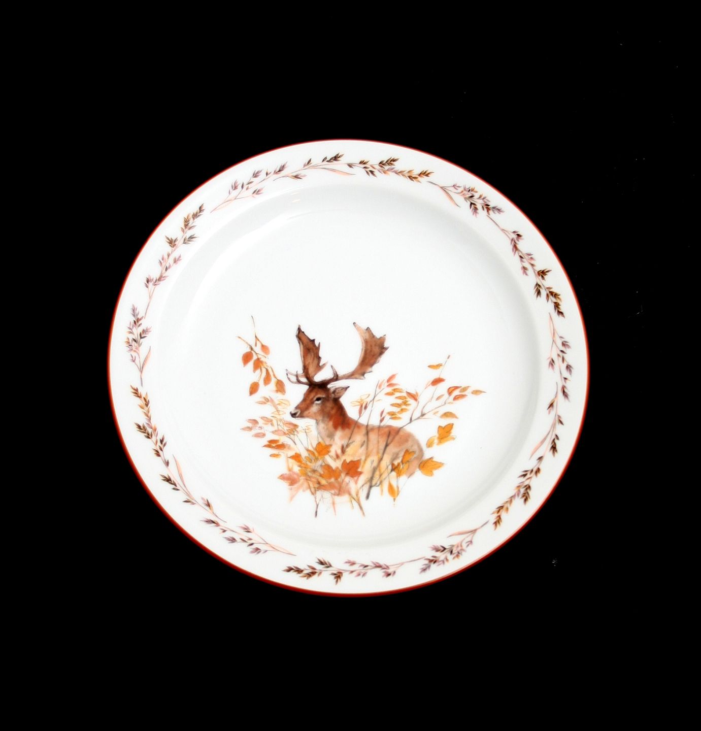 Jagtstellet designet af Mads Stage for Imerco. Kagetallerken. Desserttallerken. Diameter 17 cm. Pris: 50 kr. stk.