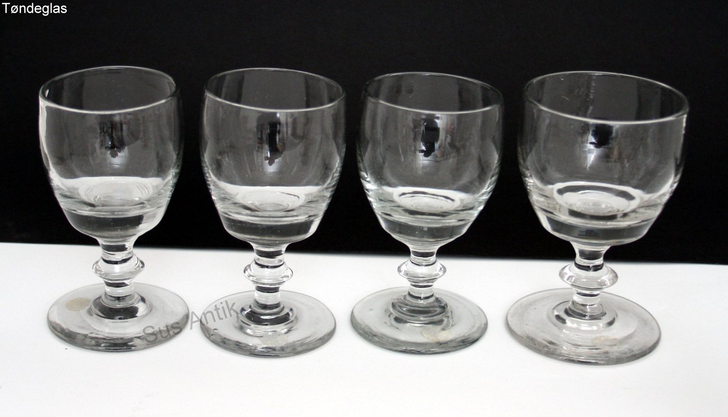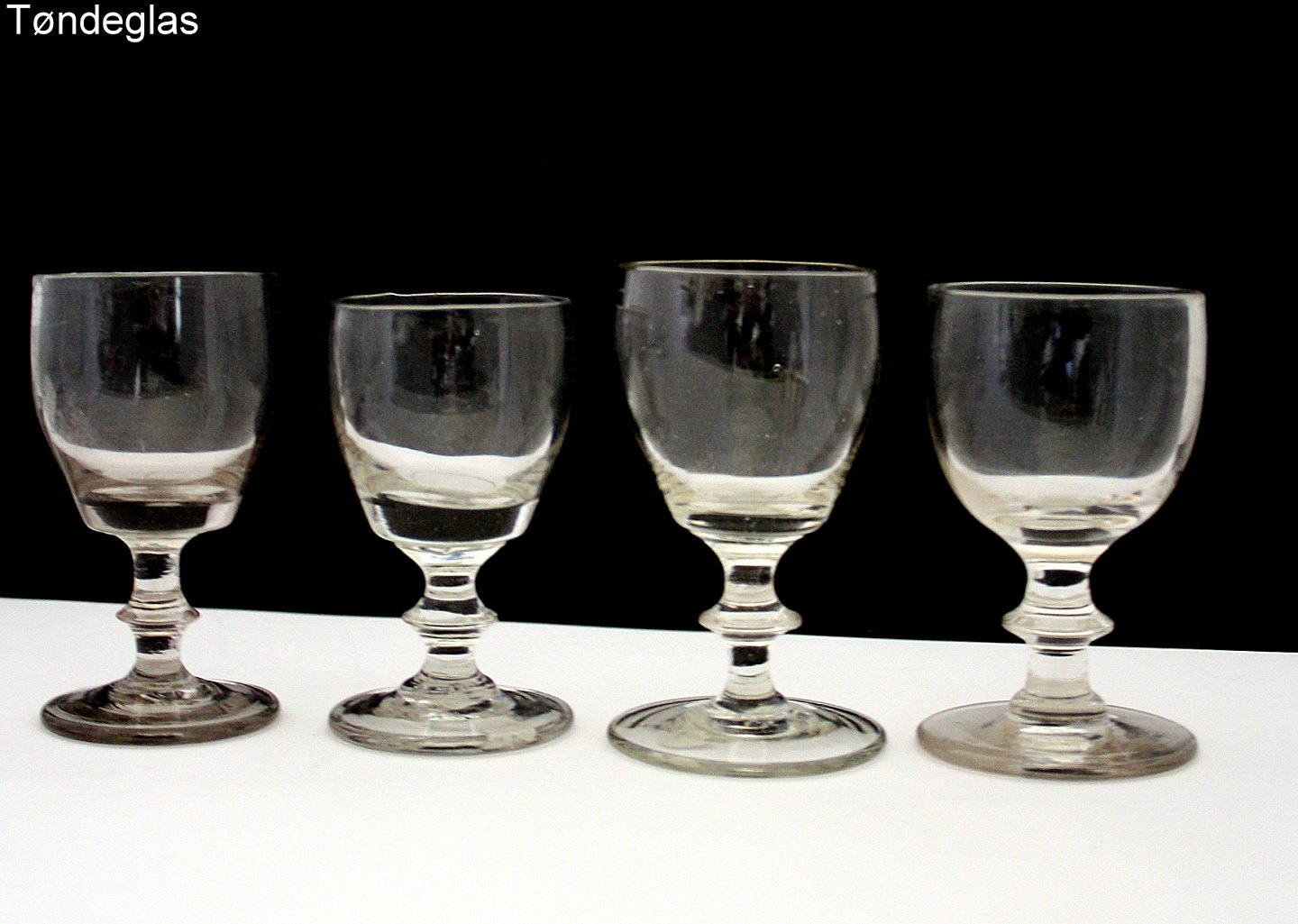 Glassene på foto 2 er af lidt ældre dato, glasmassen er mørkere og mere uren, samt knækket i bund. Pris: 225 kr. stk.