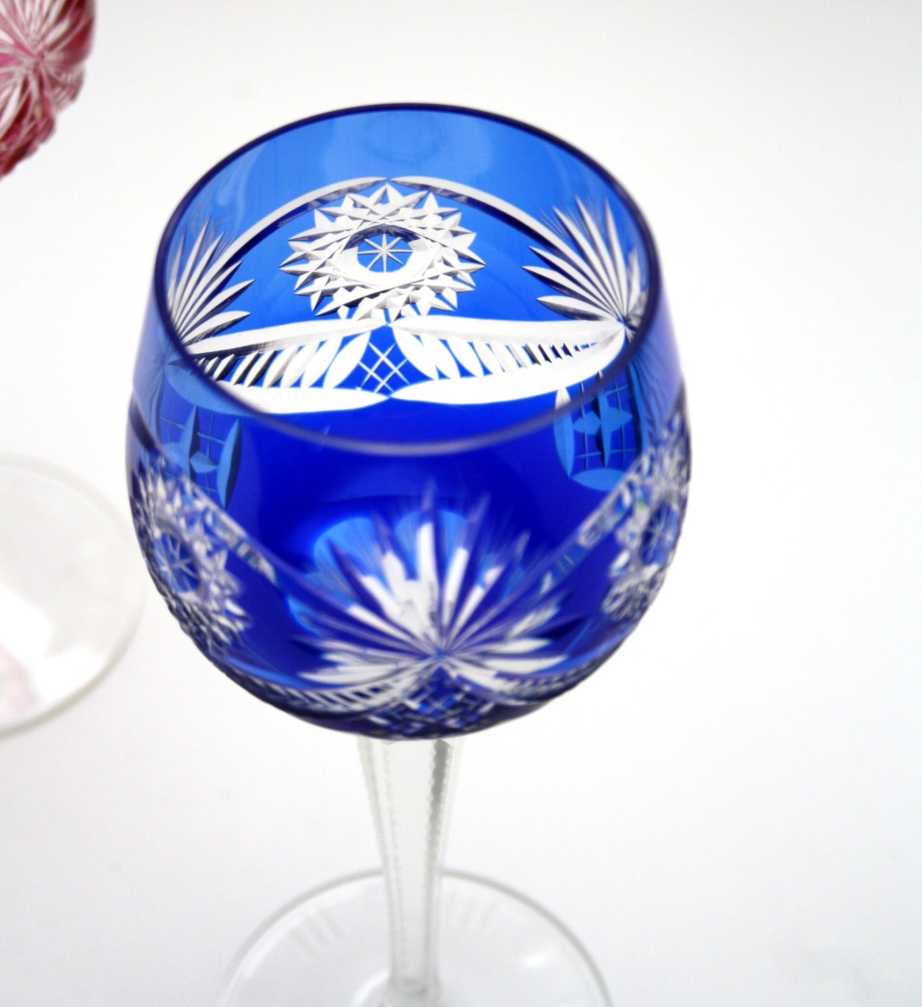 Bøhmisk krystalglas i sarte farver med slebet kumme, stilk og fod. B-7-21. Højde 18,5 cm. Pris: SOLGT Orange. Lager: 0 Rosa. Lager: 0 Blå. Lager: 0 Grøn. Lager: 0