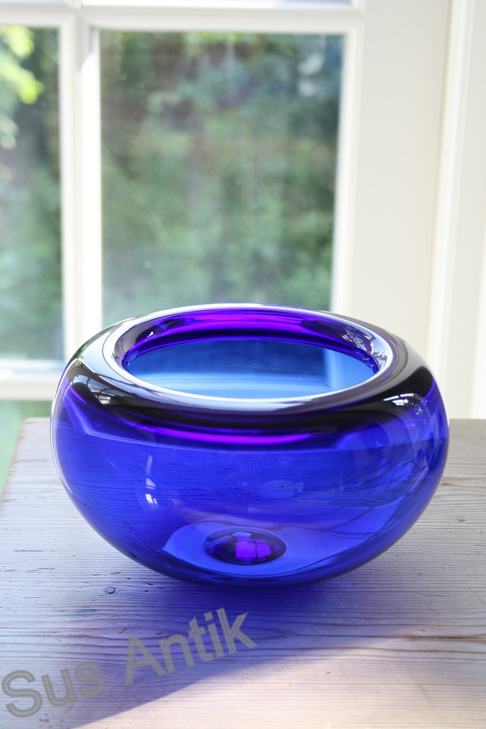 Holmegaard, Provence skål i blåt glas. Designet af Per Lütken i 1955 og produceret lige siden. Diameter 18 cm. Højde 11 cm. Fin stand. Pris: SOLGT