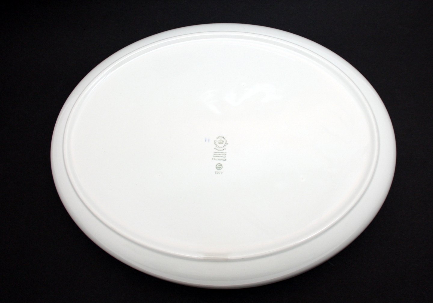 Ovalt stegefad. Længde 34 cm. Bredde 26,5 cm. Højde 5 cm. Nr. 3079. 1. sortering. Pris: SOLGT