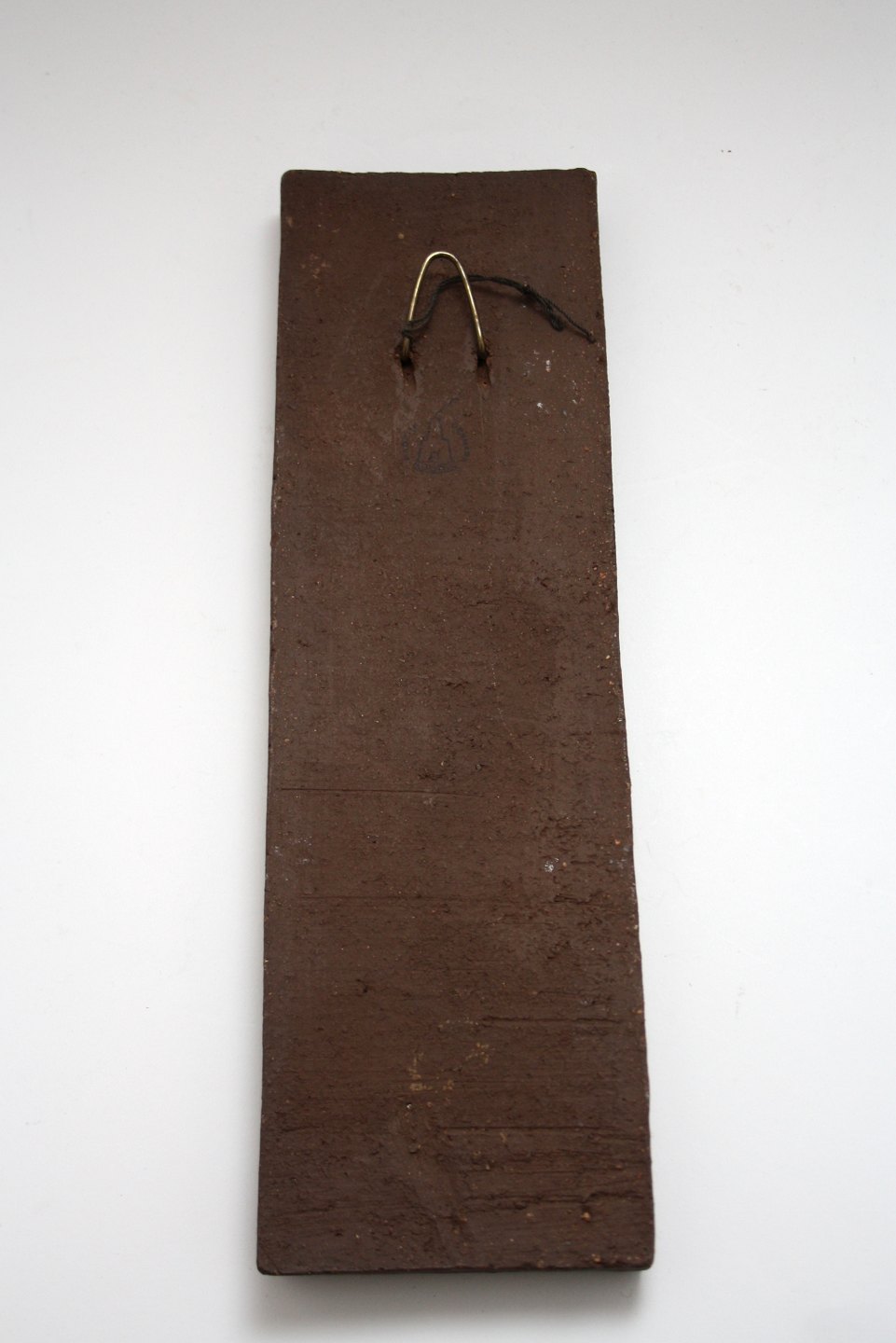 Knabstrup, Relief med rødglaserede ansigter designet af Christine Konschak. Længde 31 cm. Bredde 9 cm. Pris: SOLGT