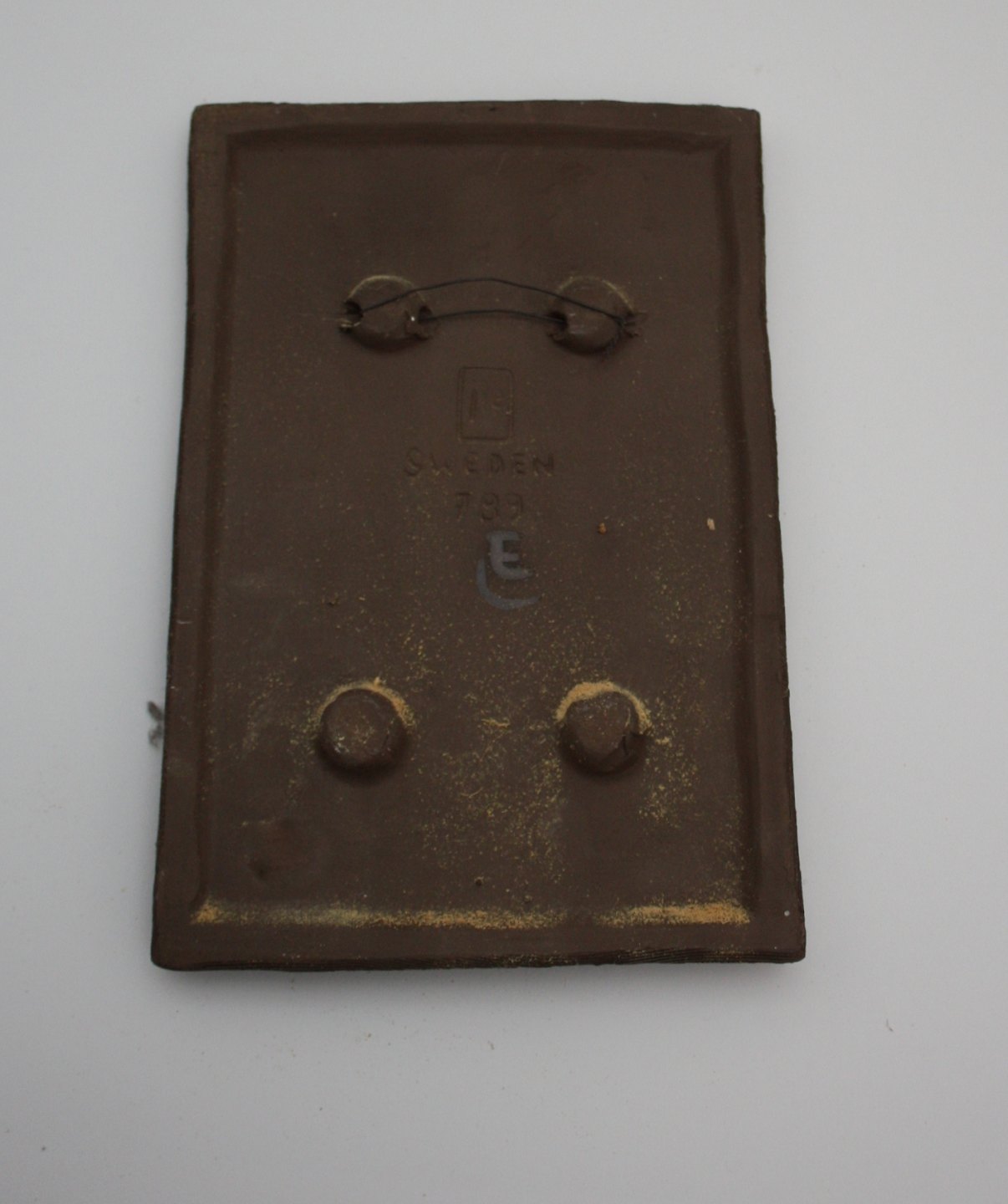 Jie-Keramik, Sweden, Relief med Kaprifolie. Formnr. 789. 23 x 15 cm. Pris: SOLGT Jie-Keramik grundlagt af John Ewart Johnson i 1952, i 1967 blev Aimo Nietosvuori tilknyttet som kunstner.
