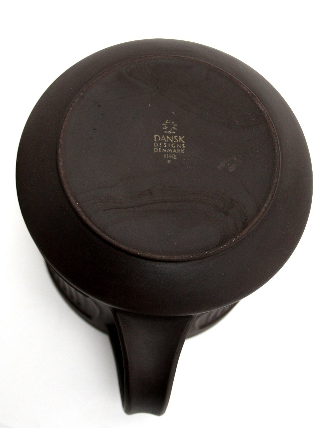 Eslau Danmark, Flamestone, Tekande med låg. Indvendig hvid glasur, yderside i rå uglaseret stentøj. Designet af Jens Harald Quistgaard i 1950,erne. Signeret IHQ, Dansk Designs, Denmark. Højde 16 cm. Øverste diameter 13,5 cm. Længde 22 cm. God stand. II. sortering. Pris: SOLGT