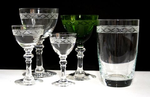 Holmegaard Glasværk, Brattingsborg krystalglas, slebet bort på kummen og knop på stilken. Design: Jacob E. Bang 1930.