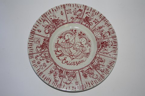 Rød platte med telefonmotiver, Bjørn Wiinblad