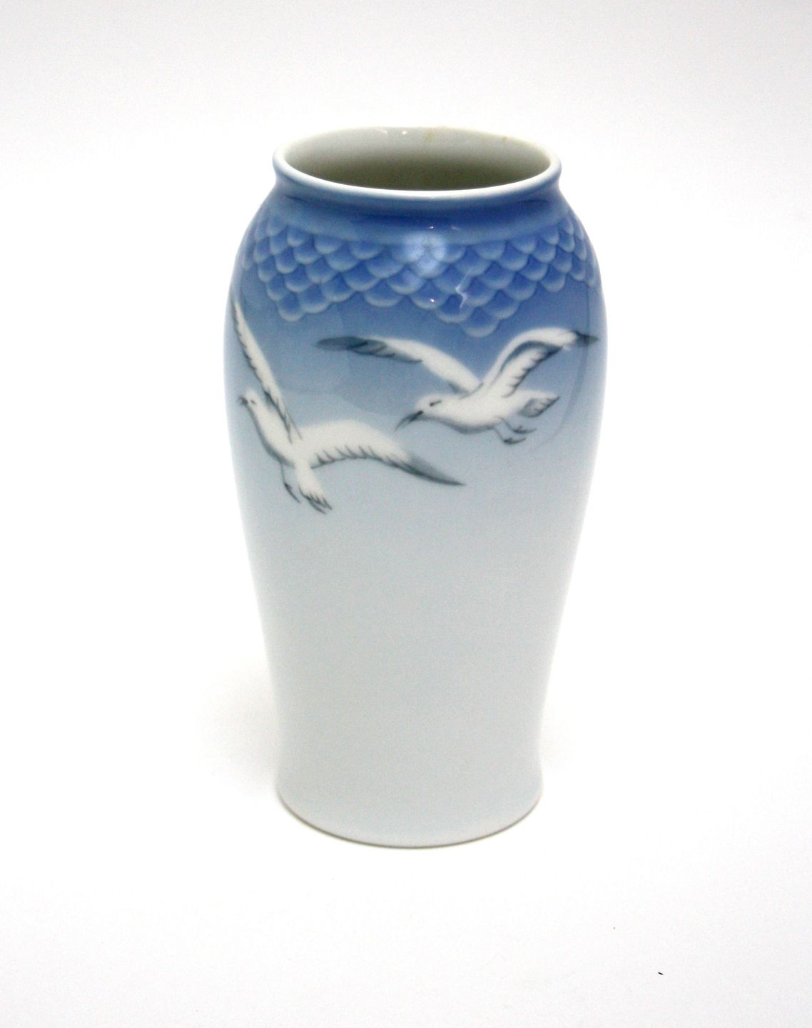 Bing & Grøndahl, Måge uden guld, vase. Nr. 201. Produceret 1962-1970. Højde 13,5 cm. Øvre diameter 5,5 cm. I. sortering. Fin stand. Pris: SOLGT