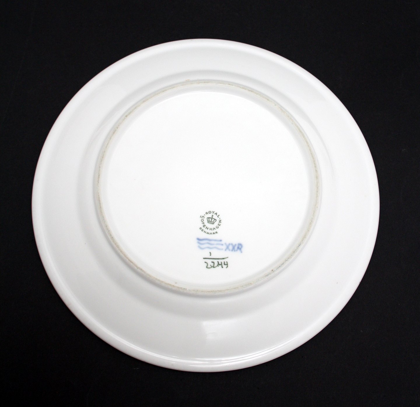 Royal Copenhagen, Musselmalet riflet jernporcelæn / hotelporcelæn, Middagstallerken. Nr. 1/2244. Diameter 24,5 cm. I. sortering. Brugsslid på overfladen. Pris: 425 kr. stk. Lager: 4