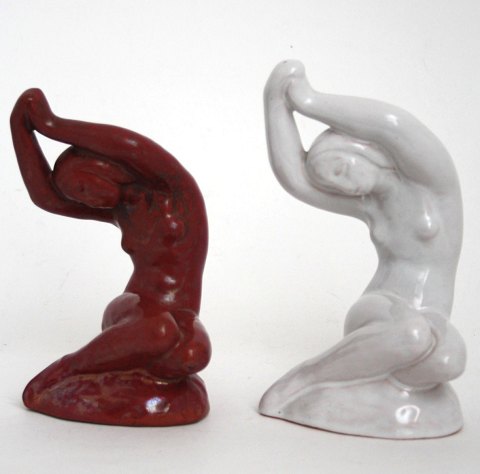Holmegaard, Karen Blixen rød vase, opalhvid indvendig. Designet af Anja Kjær fra 2000. Signeret. Vasens form er inspireret af afrikanske kvinders hals og armringe. Højde 17 cm. Diameter 14 cm. Pris: SOLGT