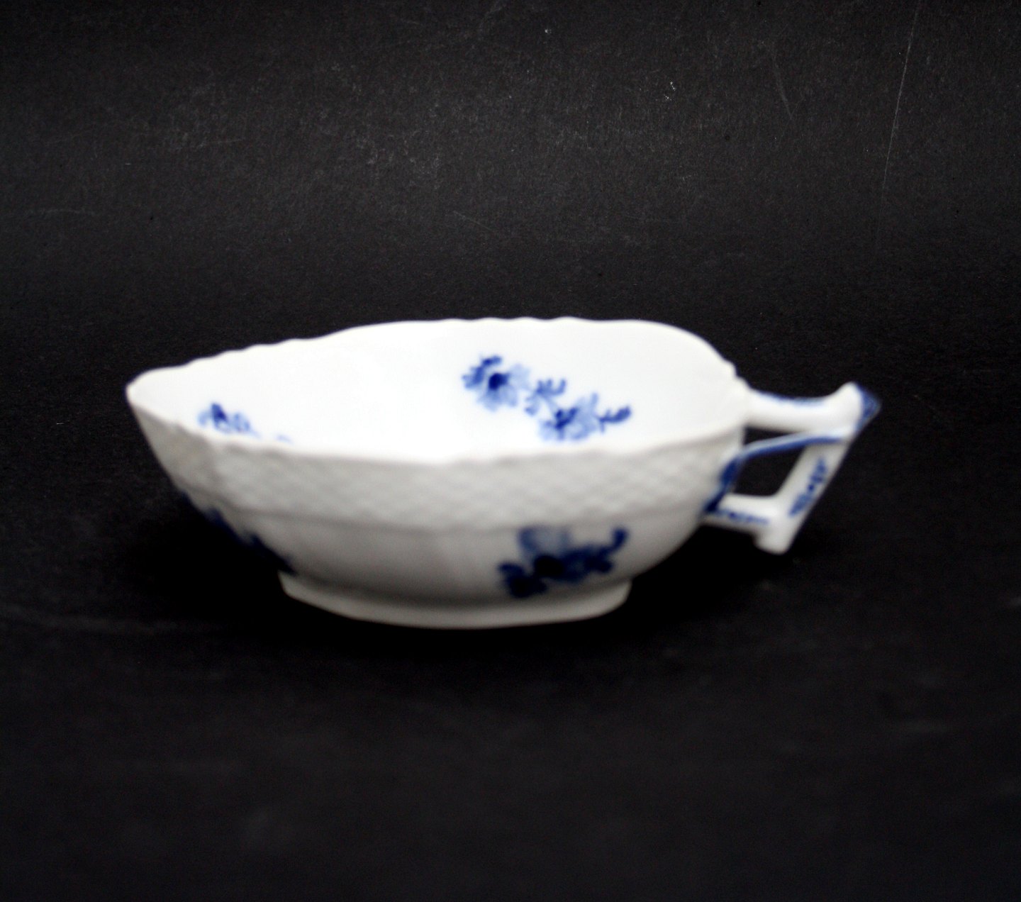 Royal Copenhagen, Blå Blomst Svejfet, Kande/næb/skål med hank. Nr. 10/1603. Produceret mellem 1898-1923. Længde 15 cm. Bredde 10 cm. Højde 4 cm. I. sortering. Pris: