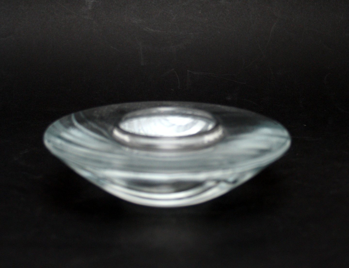 Holmegaard, Skagarak, fyrfadsstage, mellem. Klar glas med ru bagside og bølget mønster. Designet af Torben Jørgensen i 1987. Diameter 13,5 cm. Højde 4 cm. Pris: 100 kr. stk. Lager: 2