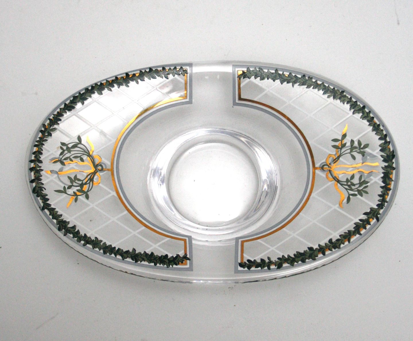 Holmegaard, Golden Christmas kalenderstage 2000, Mistelten og granranke. Designet af Michael Bang/Peter Svarrer og Jette Frölich. Længde 18,5 cm. Bredde 12 cm. Højde 3,5 cm. Pris: SOLGT