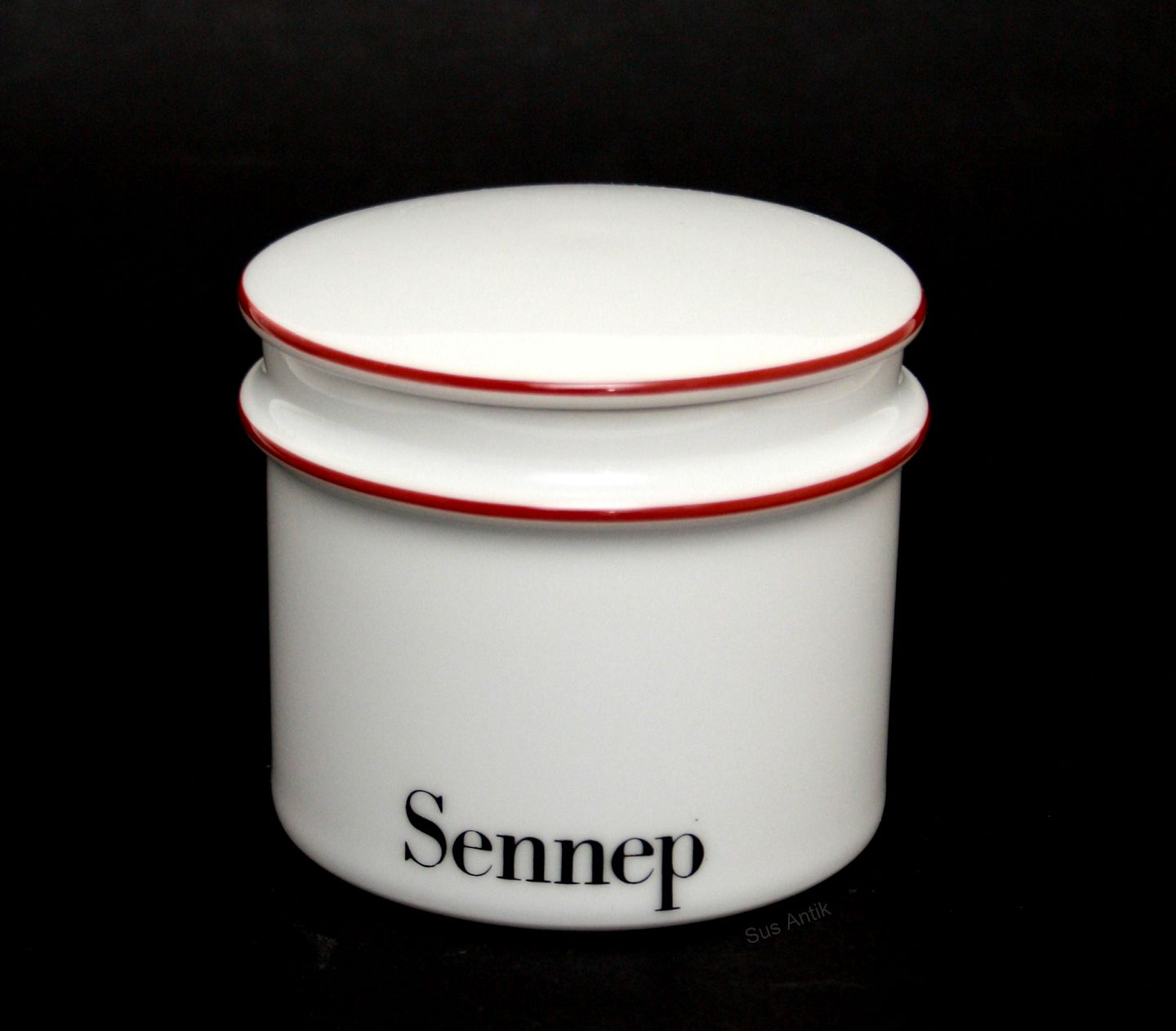 Bing & Grøndahl. Apotekerserien opbevaringskrukker, Sennep. Højde 7,5 cm. Diameter 9 cm. Pris: 200 kr. stk. Lager: 1