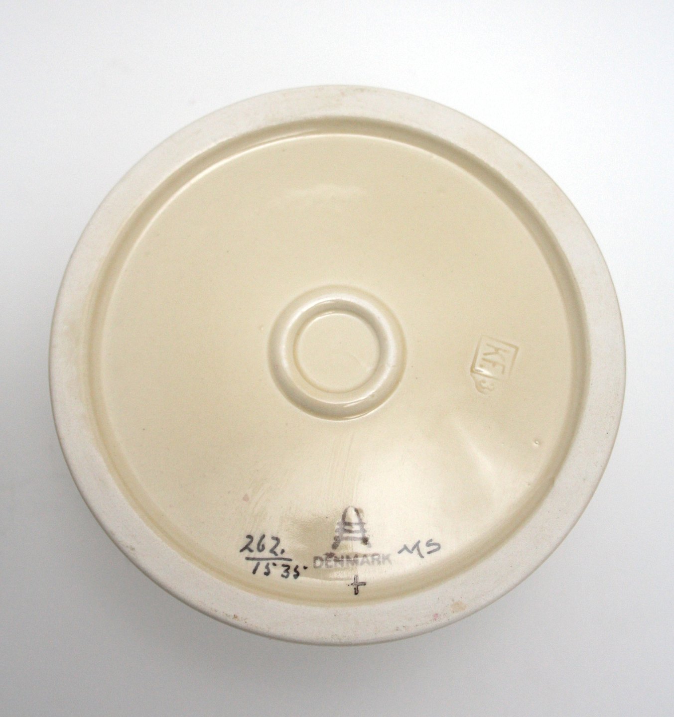 Knud, Aluminia fajance. Design Niels Thorsson. Håndmalet. Produceret i perioden 1934-1963. Lysestage. Højde 6 cm. Diameter 12 cm. Dek.nr. 262. Pris: 200 kr. stk. Lager: 2