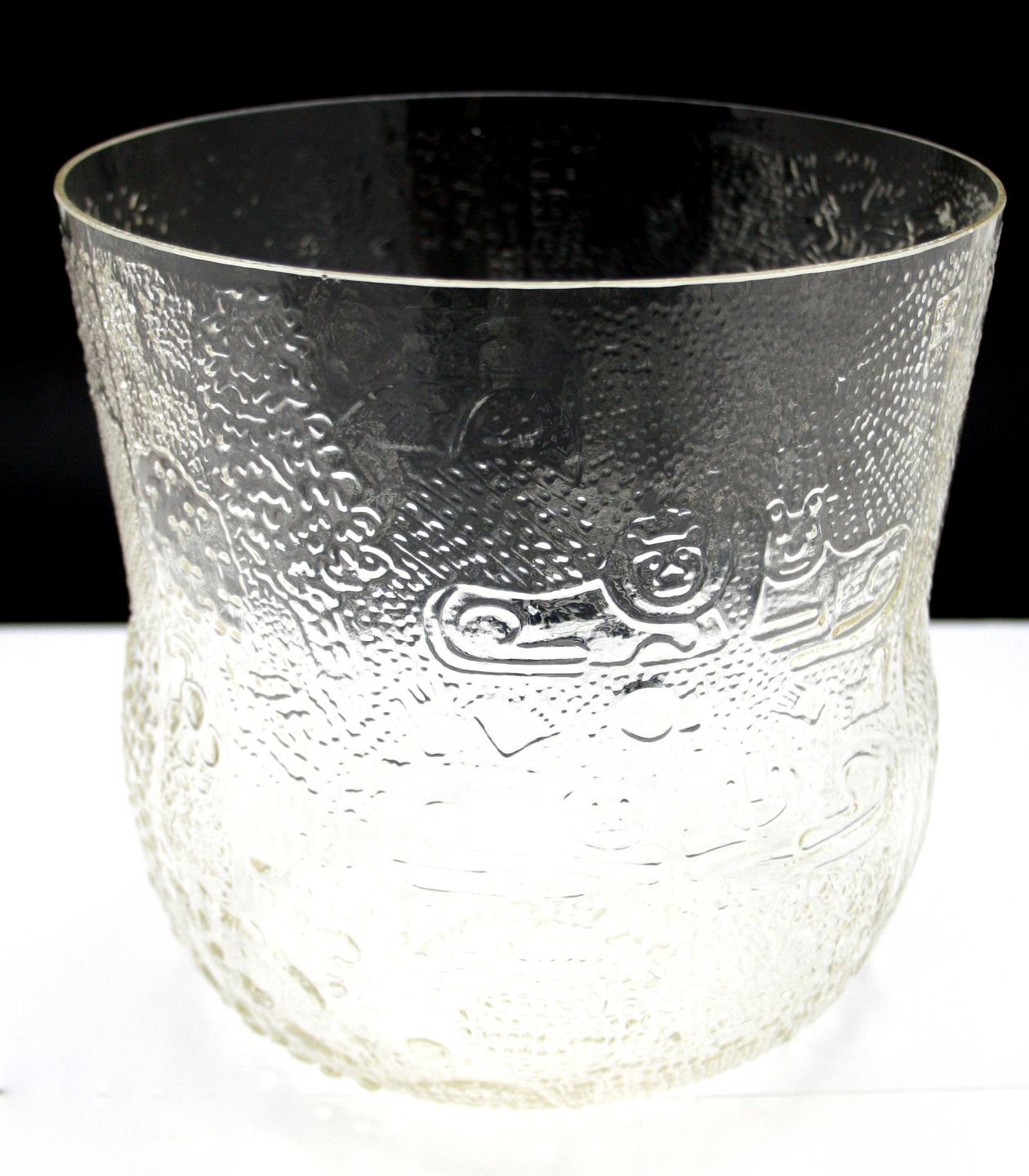 Nuutajärvi, Iittala, Finland, Fauna bowle, skål i glas. Designet af Oiva Toikka i 1970'erne. Motiver bla. med dyrefigurer bjørn, ugle og løver. Højde 18,5 cm. Diameter 19 cm. Pris: 350 kr.