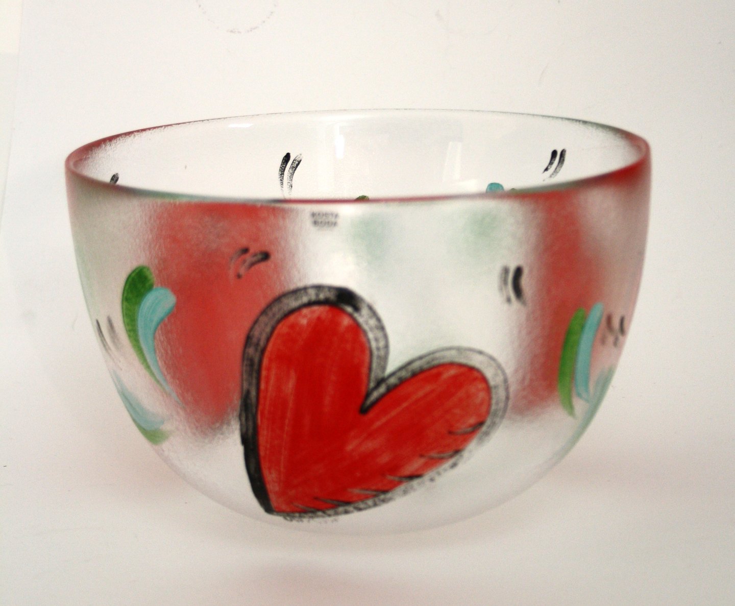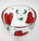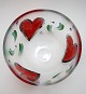 Kosta Boda Sweden, Hearts stor skål med 3 røde hjerter. Handpainted. Designet af Ulrica Hydman-Vallien i 1995. Højde 14,3 cm. Øverste diameter 22 cm. Pris: 475 kr.