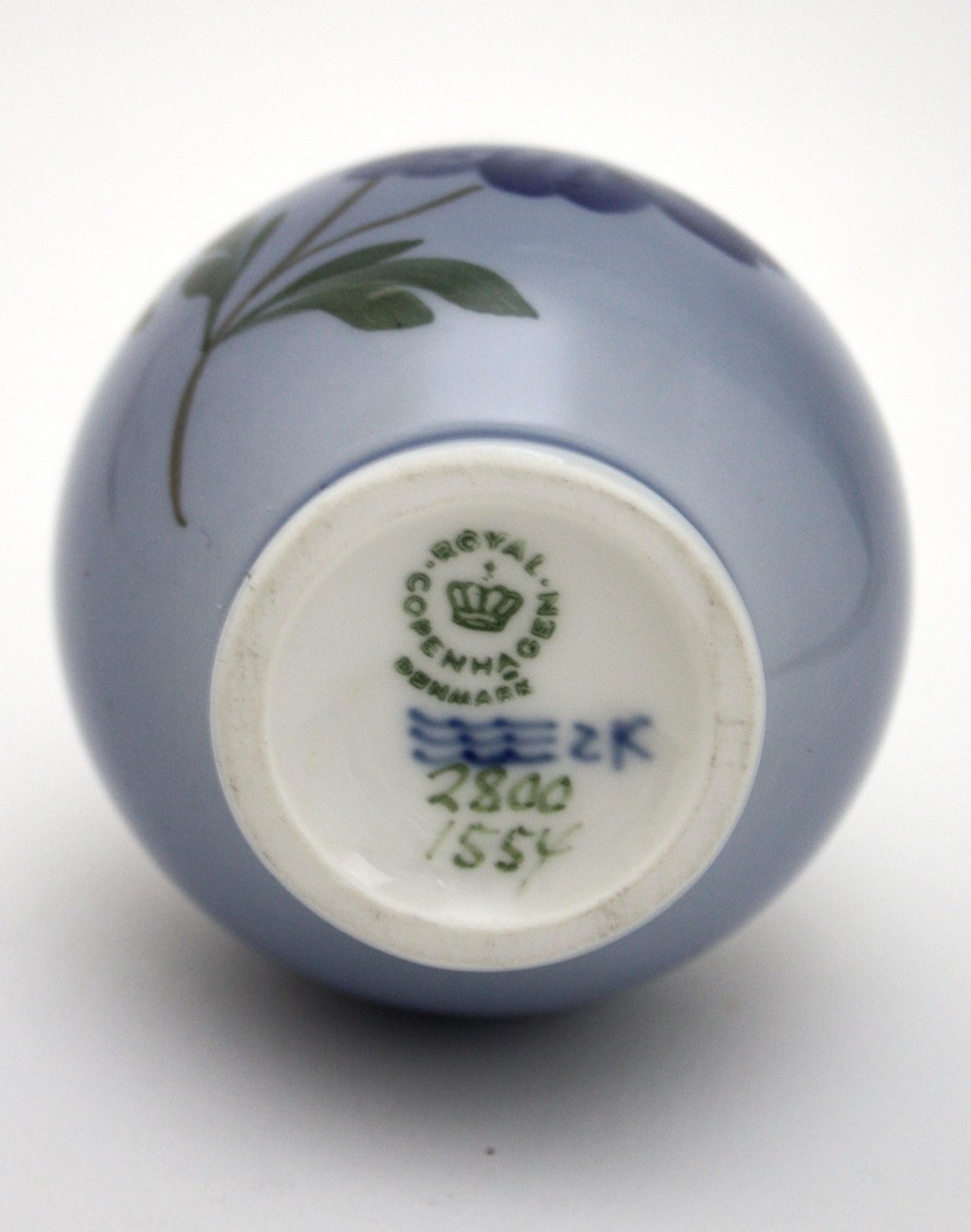 Royal Copenhagen, Lille vase med blomstermotiv. Nr. 2800/1554. Højde 12 cm. I. sortering. Pris: SOLGT