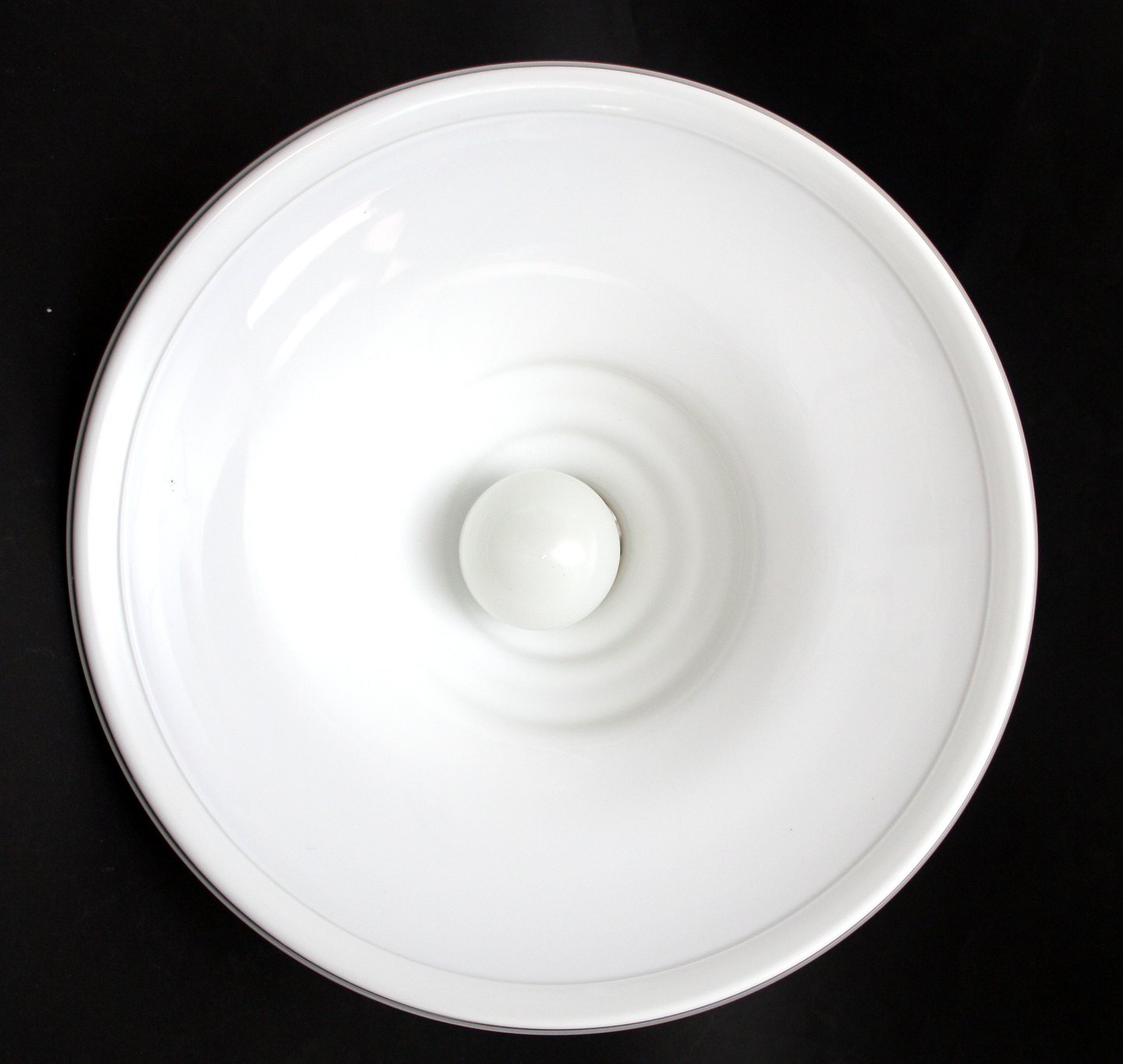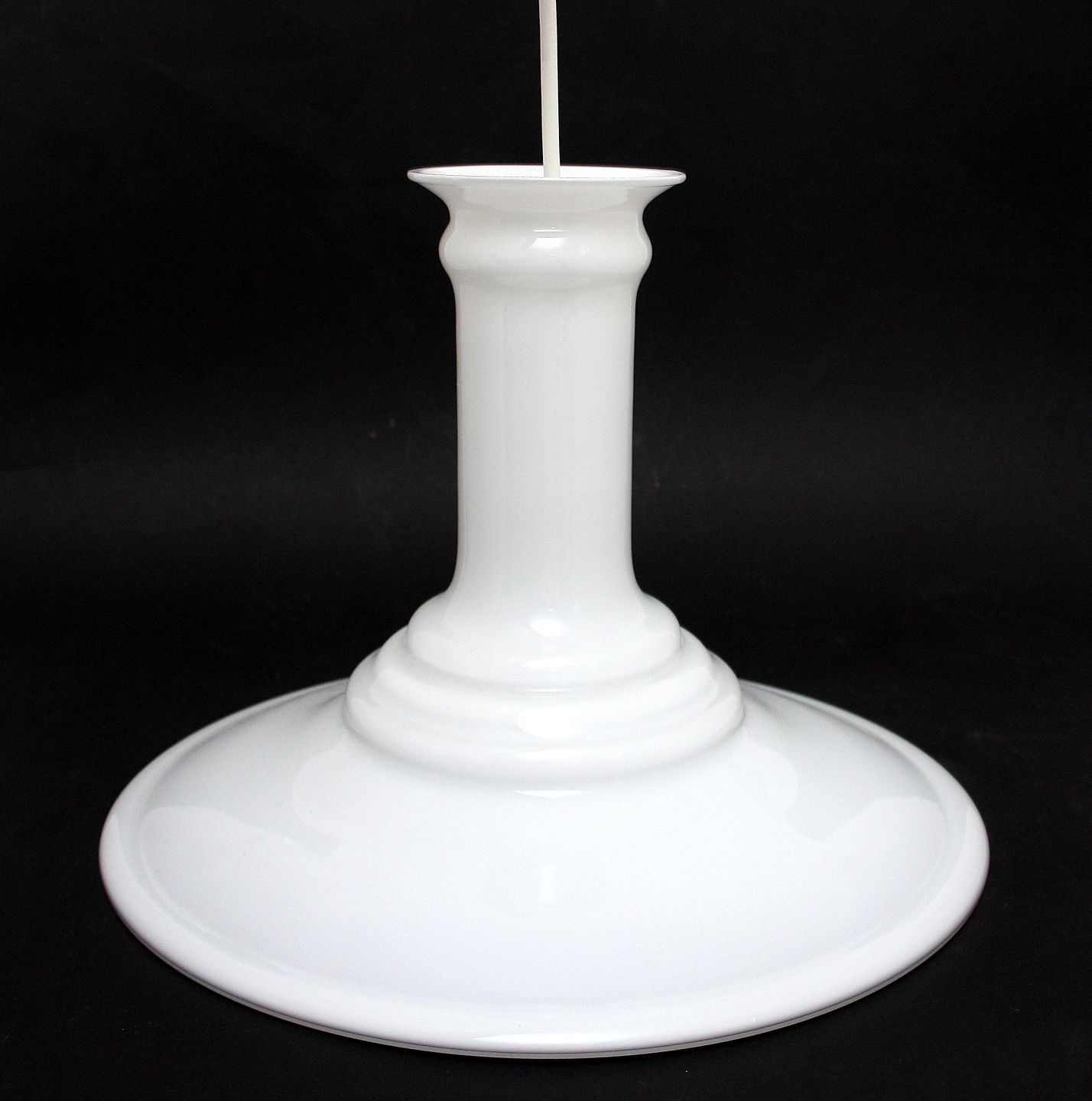 Holmegaard, Mythos pendel i hvid opaline glas. Designet af Sidse Werner i 1989. Højde 25 cm. Diameter 33 cm. Flot stand. Pris: 925 kr. stk. Lager: 3