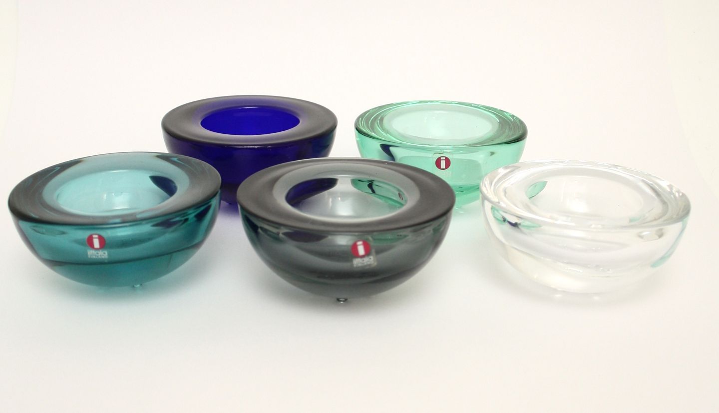 Iittala, Finland, Ballo, Fyrfadsstager. Højde 4,5 cm. Diameter 9 cm. Pris: 60 kr. stk.