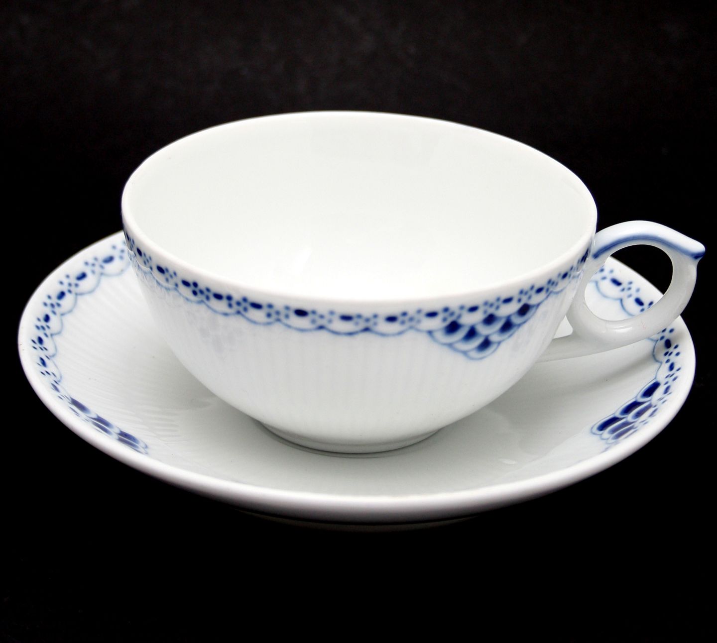 Royal Copenhagen, Prinsesse. Tekop nr. 081. Håndmalet designet i 1978 og fortsat i produktion. Højde 5 cm. Diameter 10 cm. Underkop nr. 082 diameter 14,5 cm. I. sortering. Pris: 300 kr. stk. Lager: 4