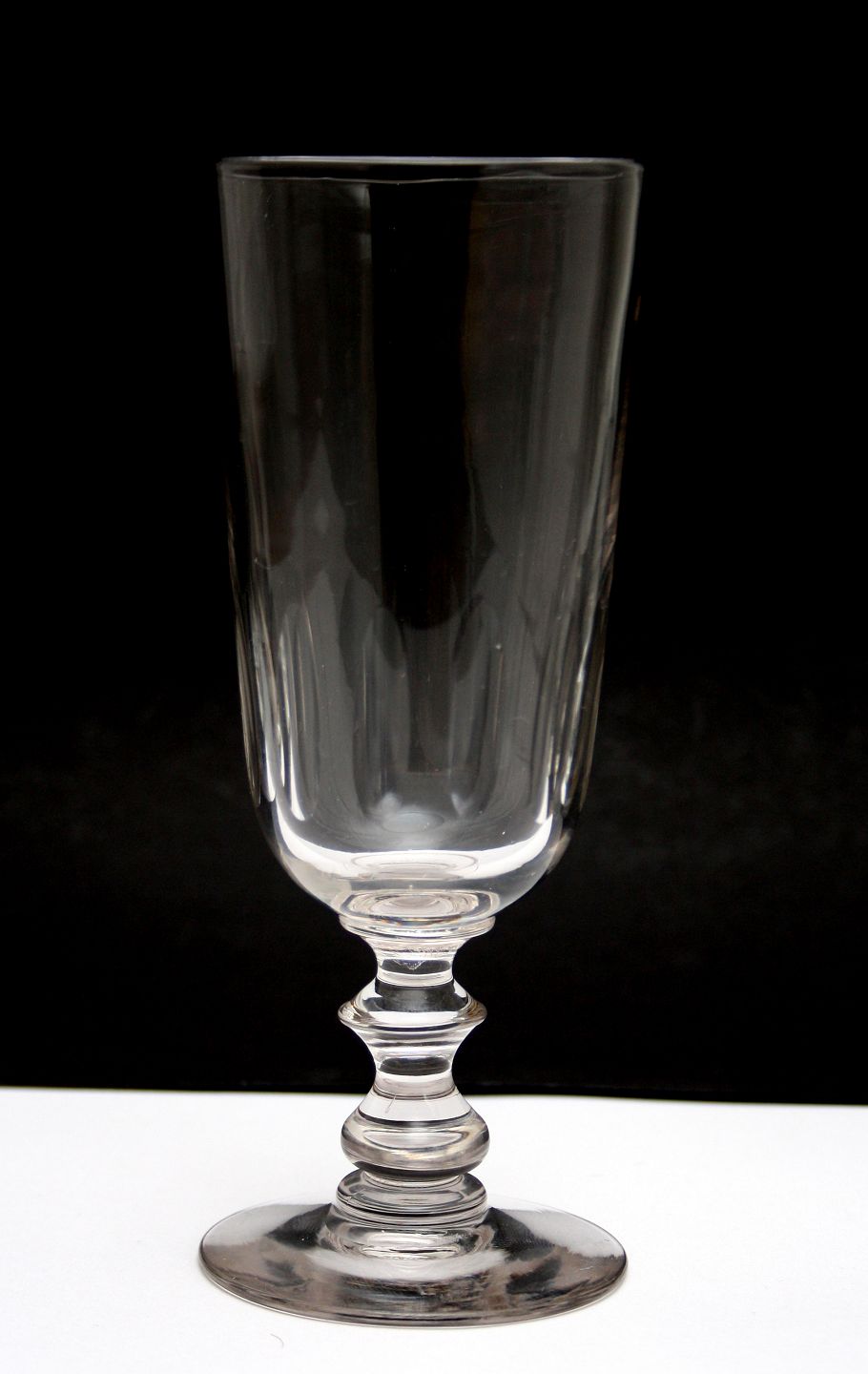 Holmegaards katalog 1900. Gammelt opdrevet toddyglas med oliveslibning, samt profileret stilk med både knap og knop. Rundsleben bund. Højde 16,4 cm. Øverste diameter 6,5 cm. Pris: SOLGT