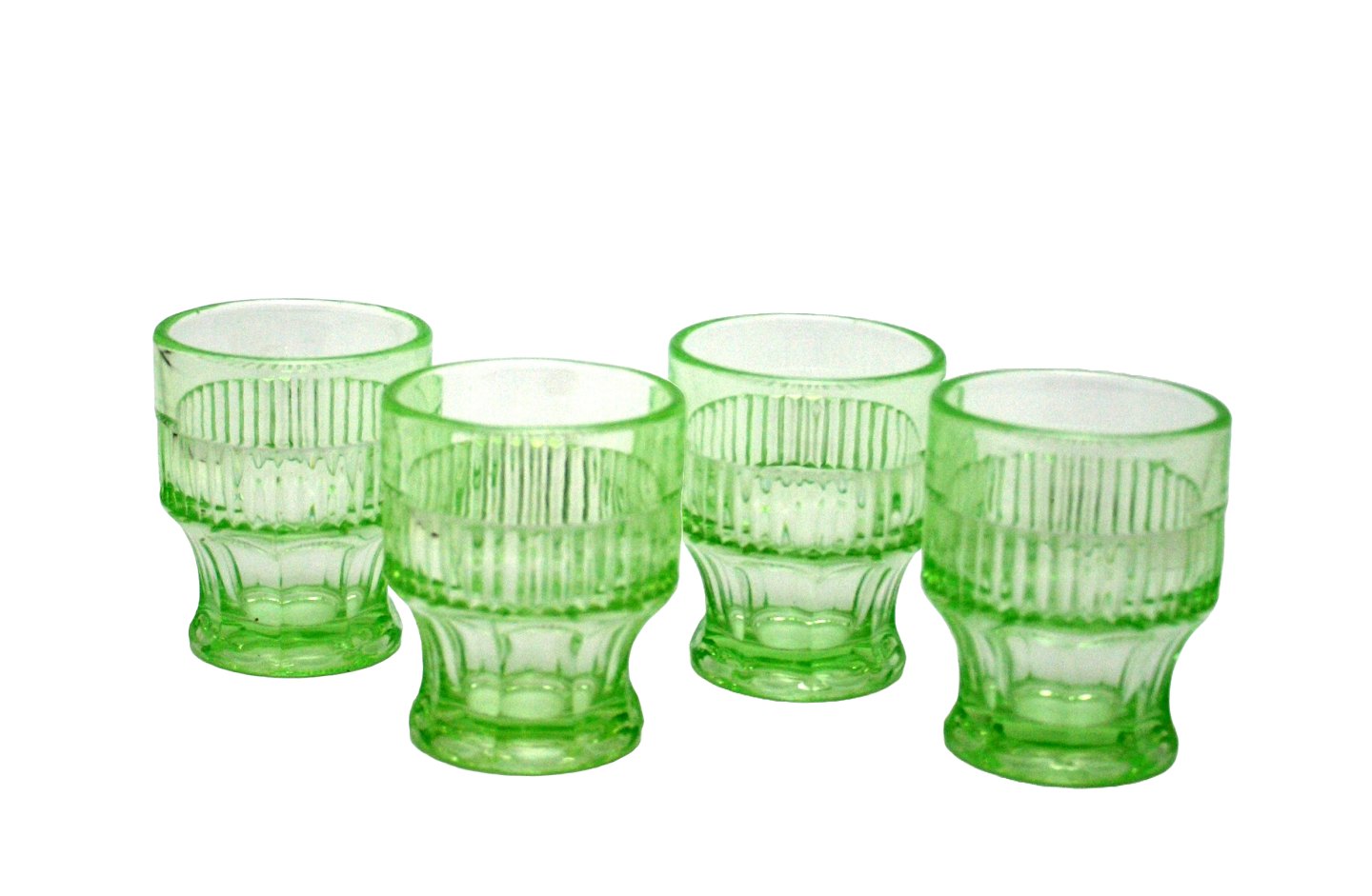 Holmegaard, Stableglas, vandglas i urangrøn. Designet i 1938 af Jacob E Bang. Højde 8,8 cm. Diameter 7,5 cm. Yderst sjælden. Pris: SOLGT