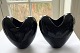 Holmegaard, Heart, sort lysestage til fyrfad og almindeligt lys. Designet af Anja Kjær i 2005. En del af Heart and Roses serien, som er slanke sokkel lysestager. Højde 10 cm. Længde 10 cm. Lidt brugsspor i form af småridser. Pris: 350 kr. for et sæt på 2