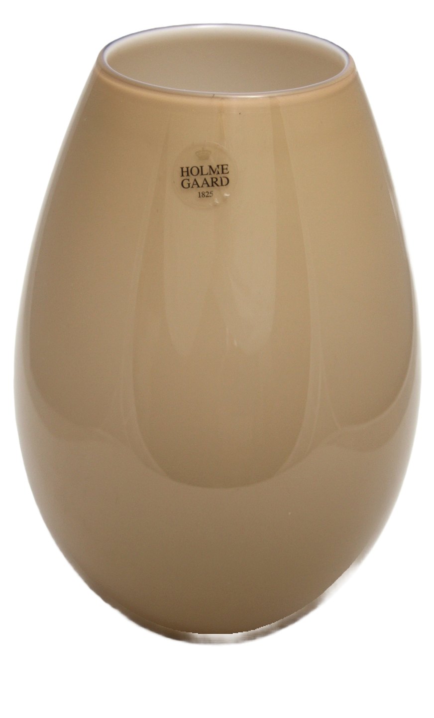 Holmegaard, Cocoon vase i mellemstørrelse lys brun/karamel glas med hvid opaline indvendig. Designet af Peter Svarrer i 2005. Højde 20,5 cm. Øverste diameter 7,5 cm. Trykt signatur.