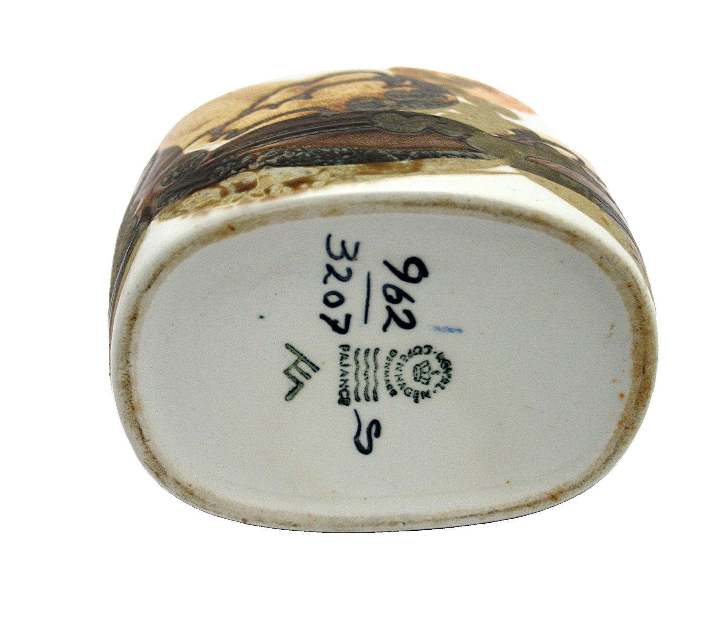 Royal Copenhagen, Kunstfajance, Lille vase. Designet af Ellen Malmer. Nr. 962/3207. Højde 13,5 cm. Længde 9,5 cm. Diameter øverst 4,3 cm. I. sortering. Pris: 275 kr.