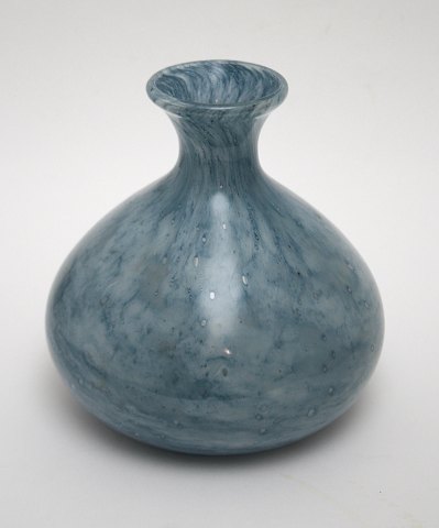 Dråbeformet vase med bobler i Koboltfarvet glas. Rundslebet i bund. Højde 14 cm. Største diameter 7,5 cm. Fin stand. Pris: 275 kr.