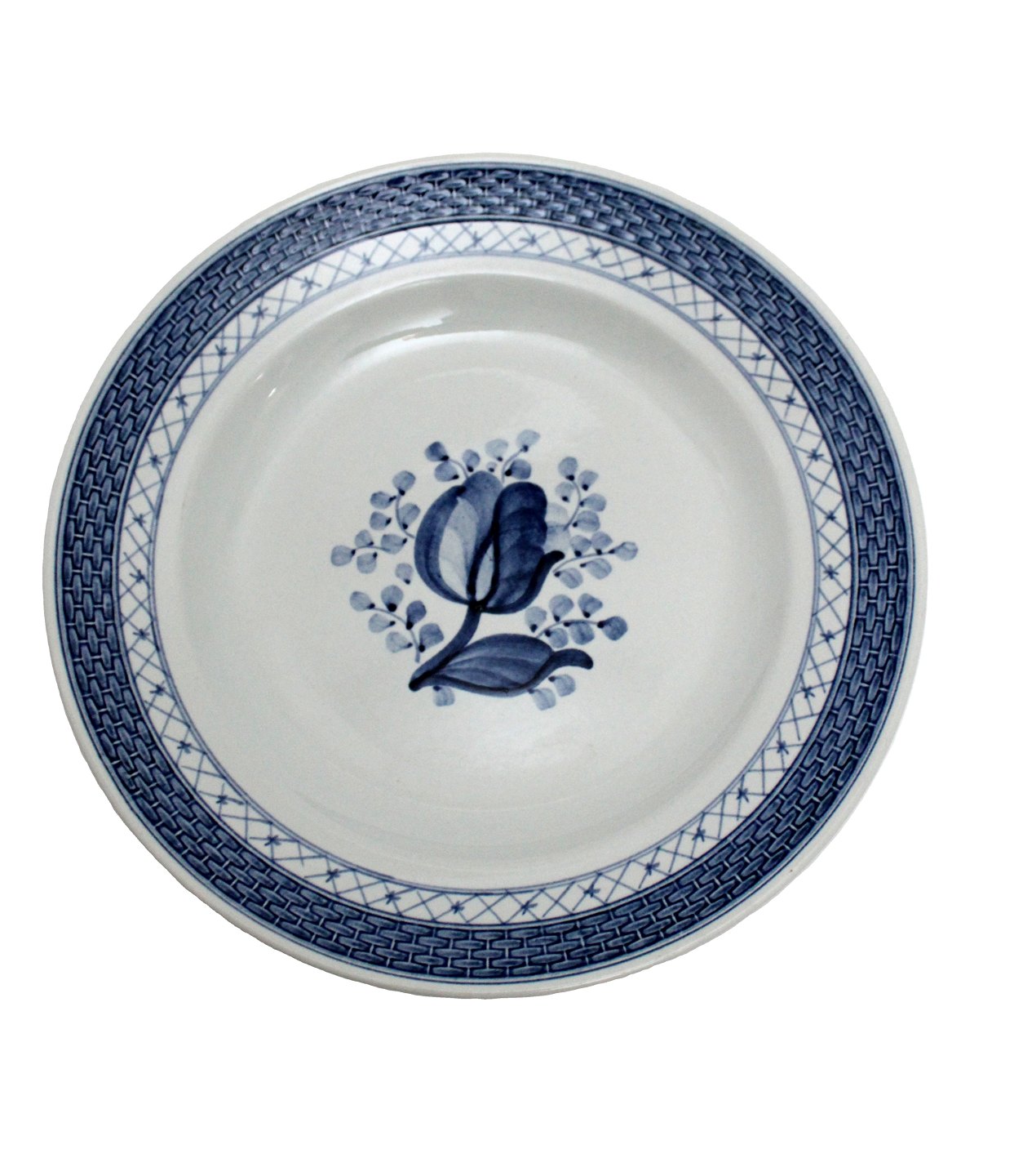 Aluminia, Tranquebar lyseblå fajance med mørkeblå tulipan og flettet bort designet af Christian Joachim. Produceret fra 1914 til 1969 på Aluminia derefter videreført hos Royal Copenhagen.