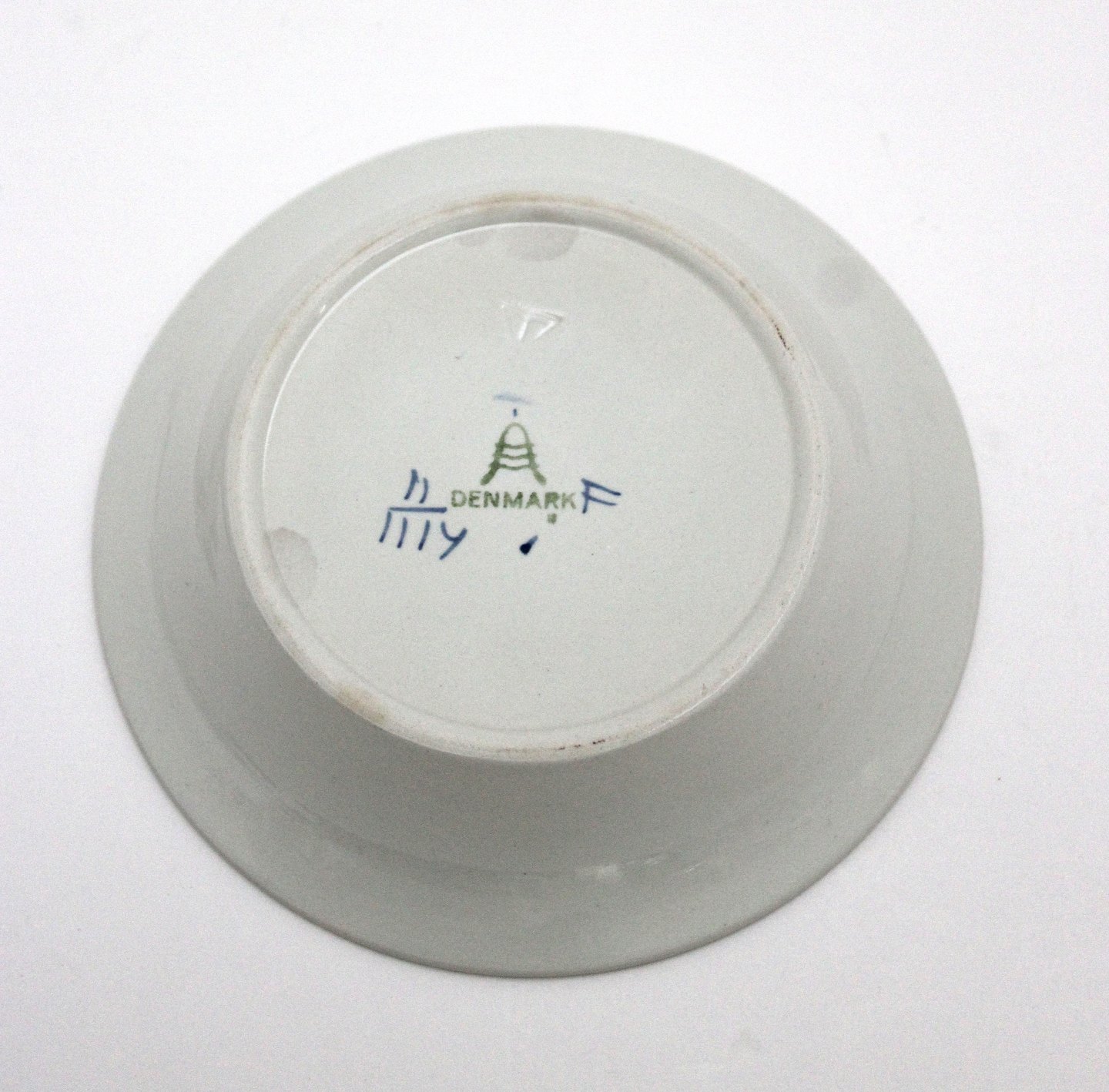 Aluminia, Tranquebar, Lille skål. Nr. 11/1114. Højde 2,7 cm. Diameter 11,7 cm. En smule misfarvning ovenover blomsten ellers fin stand uden krakeleinger. Pris: 150 kr. stk. Lager: 1