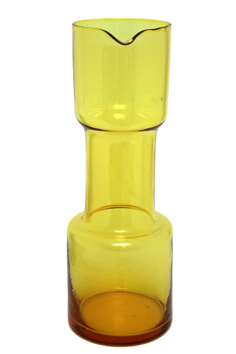 Ryd Glasbruk, Sweden Gul kande. Designet af Christer Jarenskog. Højde 25 cm. Diameter bund 9 cm. Indvendig fabriksfejl boble. Almindelig brugsslid med små ridser. Pris: SOLGT