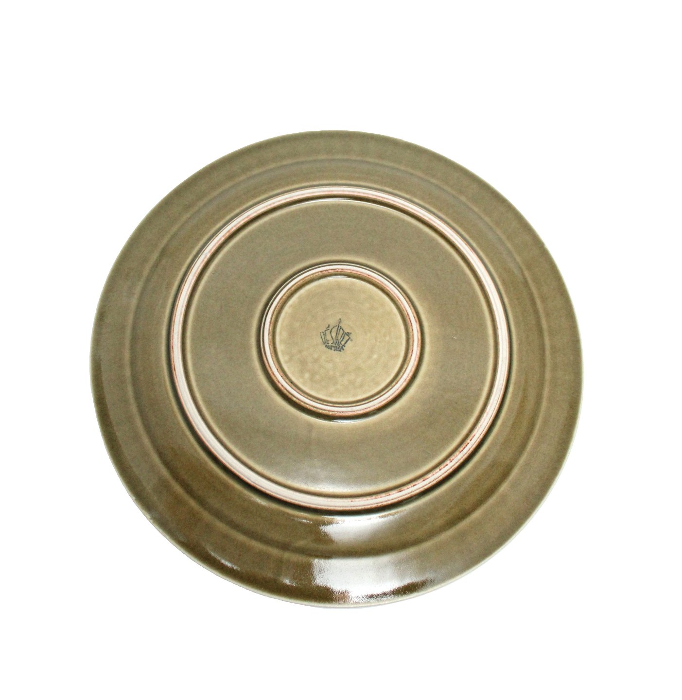 Desiree, Grøn glasseret Stor sidetallerken, som vi desværre ikke kender navnet på, men som er yderst sjælden. Diameter 19 cm. Lettere overfladekrakeleringer. Pris: 50 kr. stk. Lager: 6