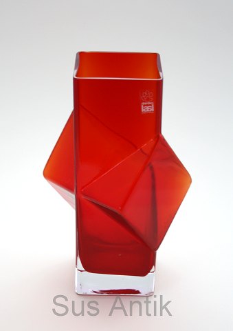 Vase i grå/violet tonet transparent glas med rillede vandrette linjer. Højde 25,3 cm. Diameter top 11,5 cm. Diameter bund 8,5 cm. Bobler indvendig heraf en enkelt bristet. Lettere kalk brugsspor og ridser. Rundsleben i bund. Ingen signatur. Pris: 225 kr. stk. Lager: 1
