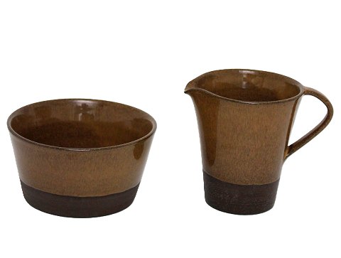 Kyhn, Sæt bestående af Espressokop, underkop og kagetallerken i brun glasur med mat ru underdel. Fremstillet af pottemager Viggo Kyhn (1923-89) Viggo Kyhn var i lære hos Kähler og fik eget værksted i Skørping i 1960'erne.